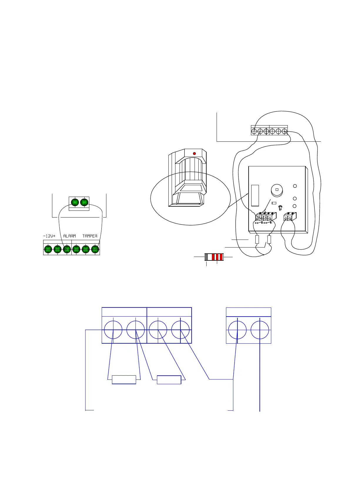 For Double-Pole wiring, connect the two resistors (use the ALARM ‘C’ and ‘NC’ contacts) to Alarm