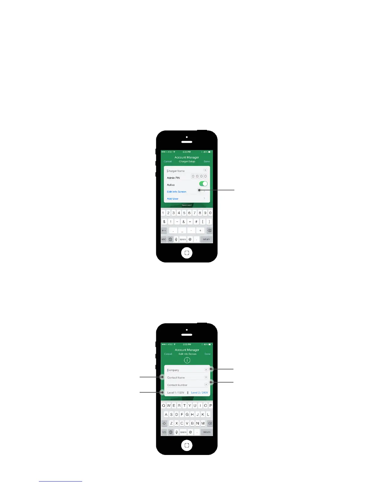 contact number. Select “Level 1/120V” or “Level 2/240V” to identify how the