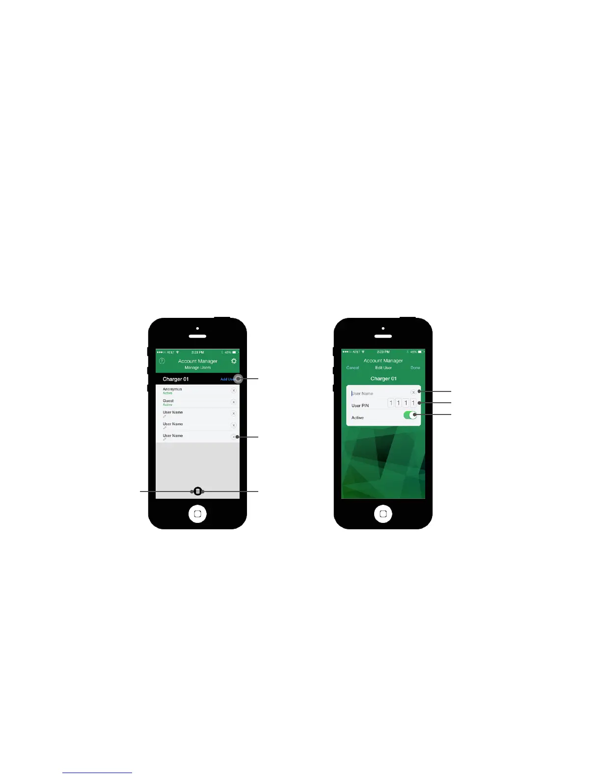 • To delete a user from the current charger, click the “X” icon next to his