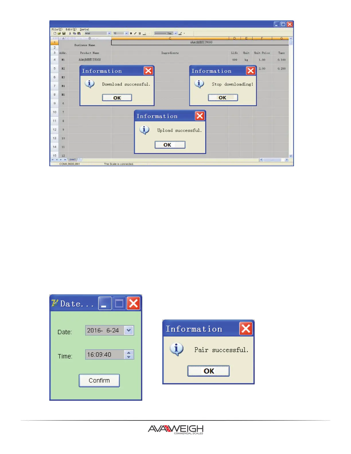 5. Choosing “Download” in “Serial” menu or F8, the scale will display “DNLOAD”, the status bar will display