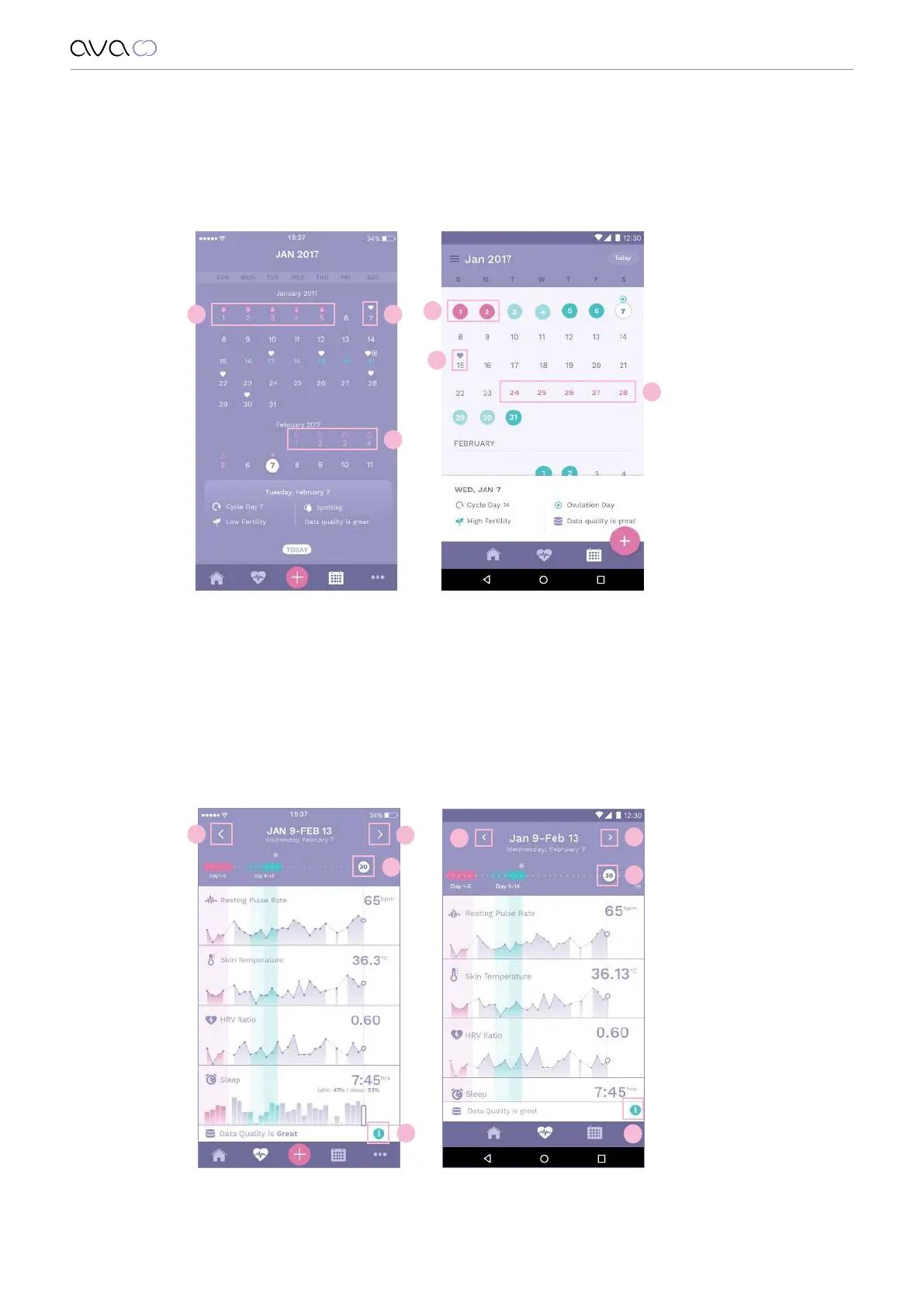 Ava Fertility Tracker - Calendar View; Health Chart View