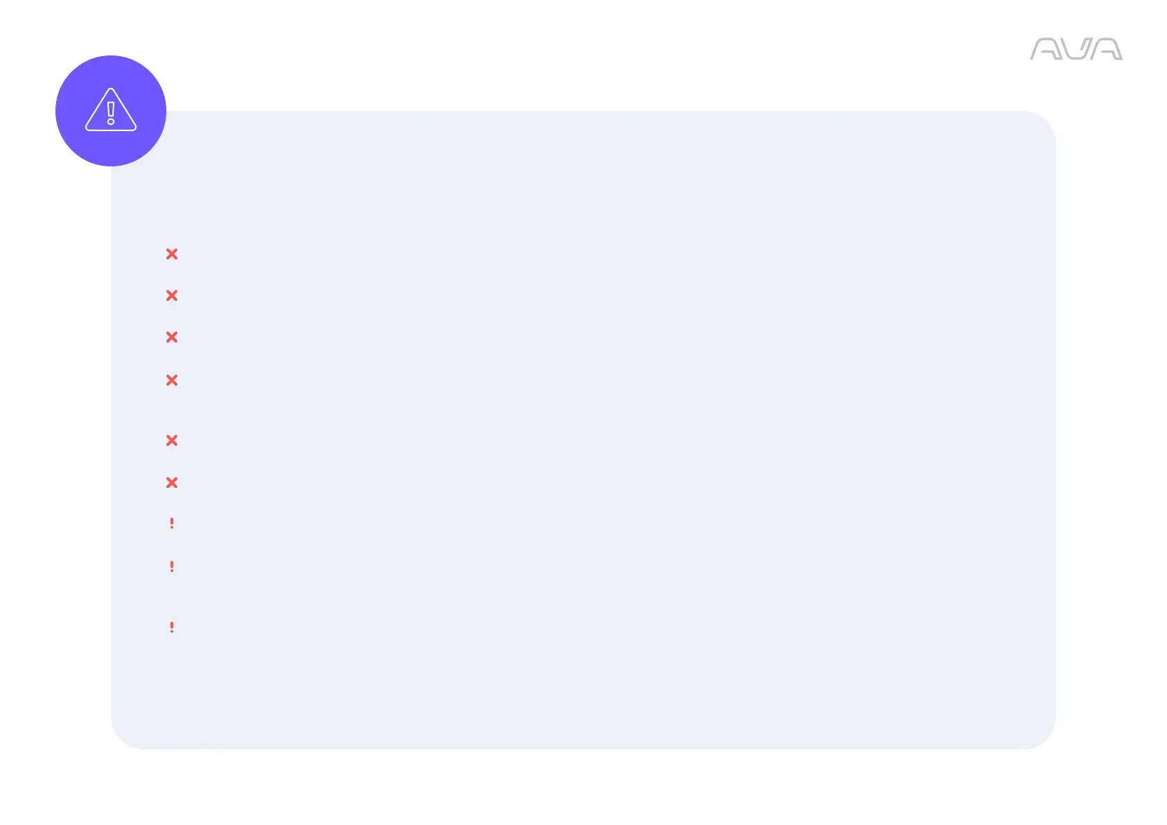 Do not try to repair the unit yourself. Refer all servicing of the camera to Ava or contact a reseller.