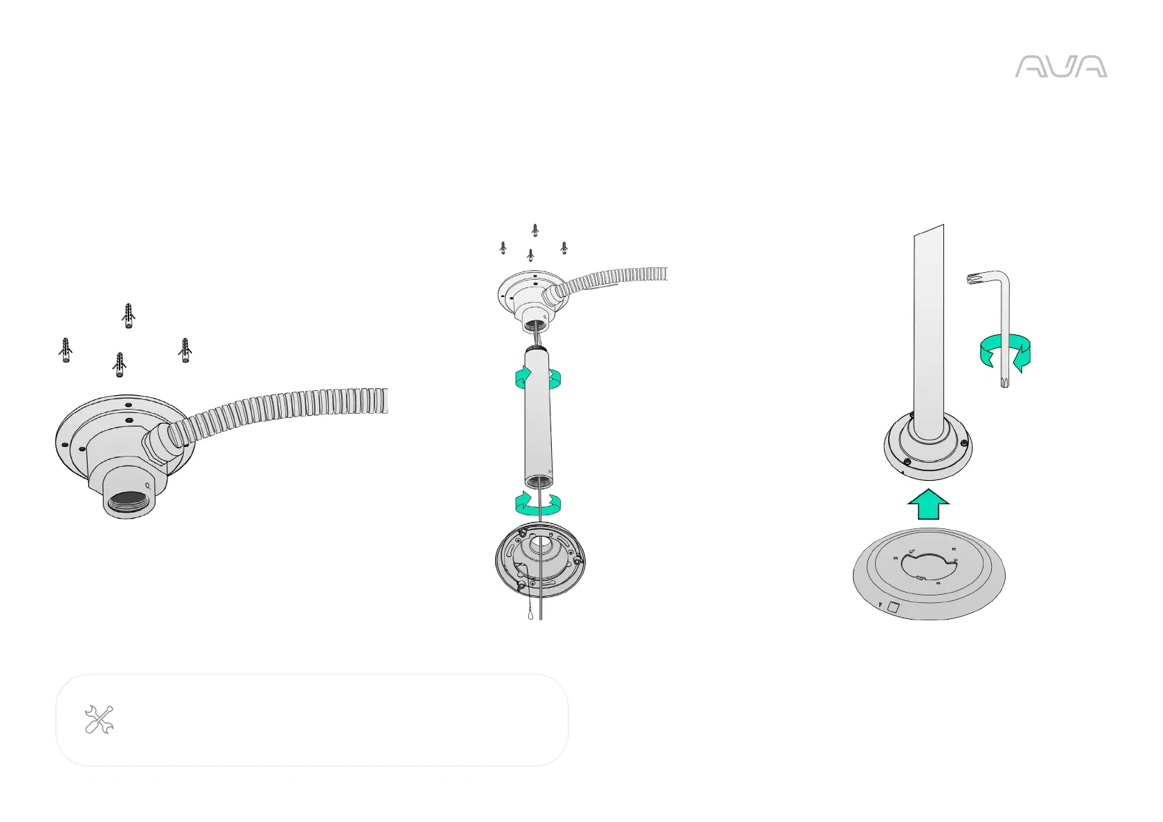 Install the pendant pipe and secure with the upper hex screw,