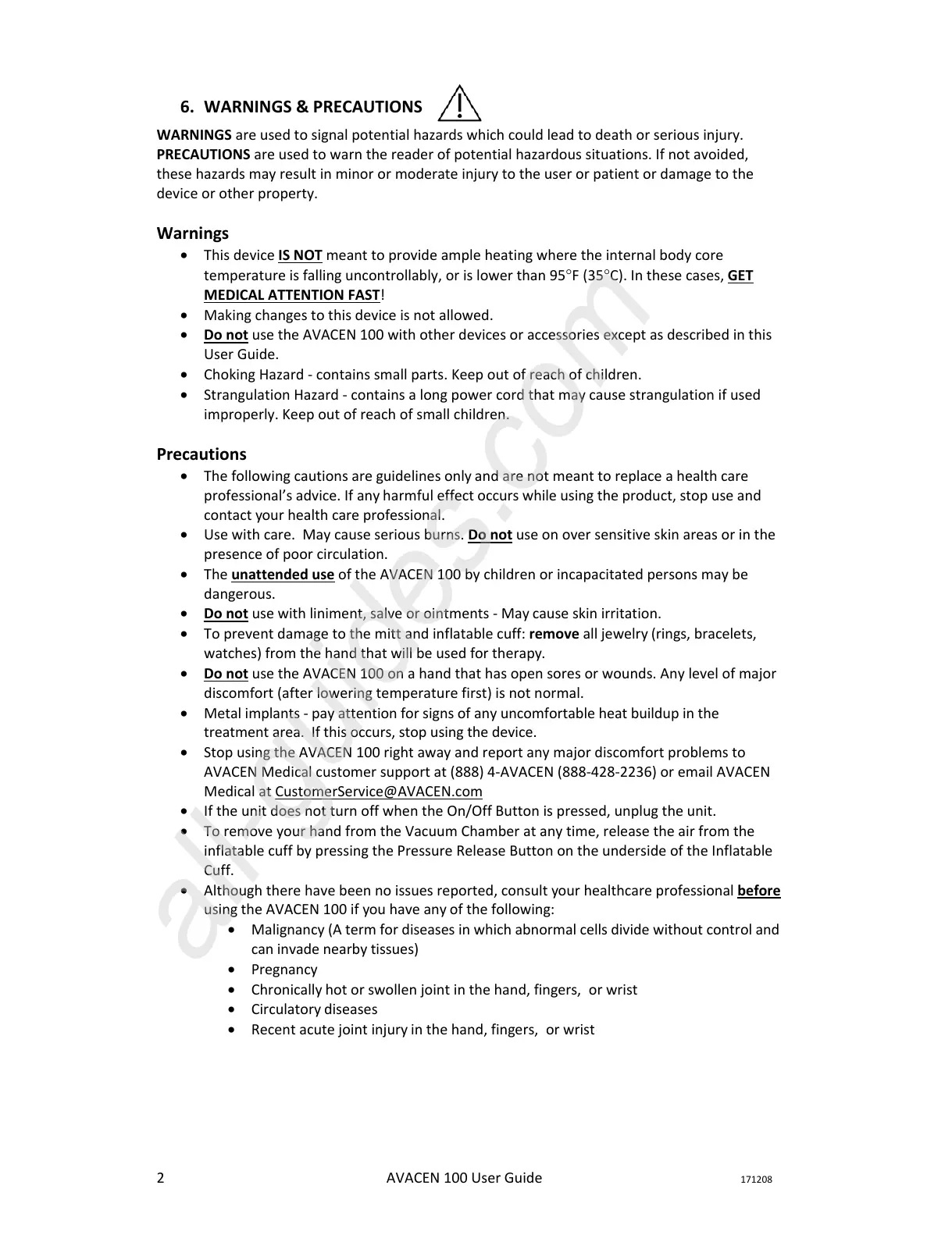 AVACEN Medical customer support at (888) 4-AVACEN (888-428-2236) or email AVACEN