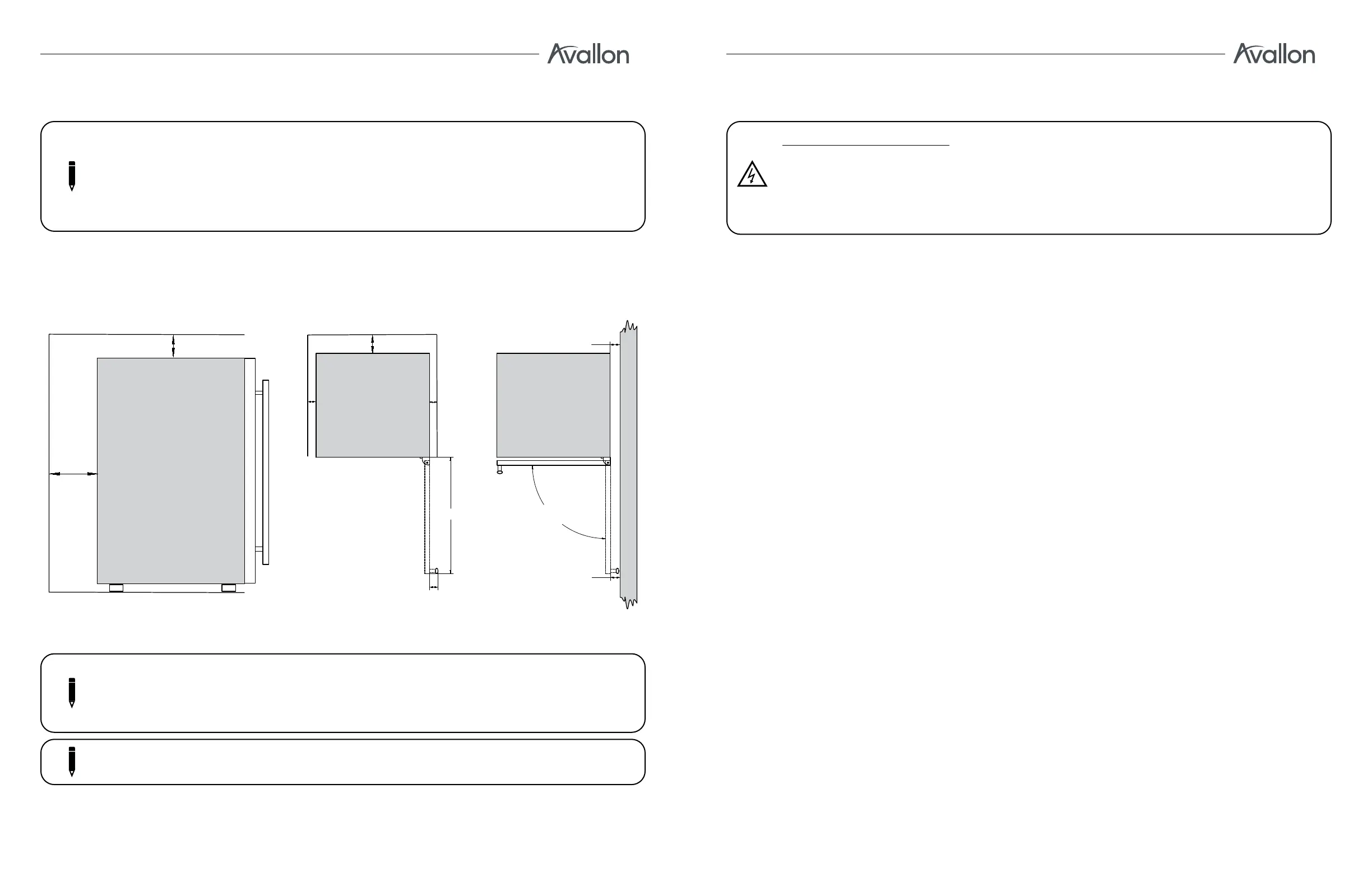 To ensure proper service access and ventilation, allow at least 2” of clearance at the back, 1/4” at the top,