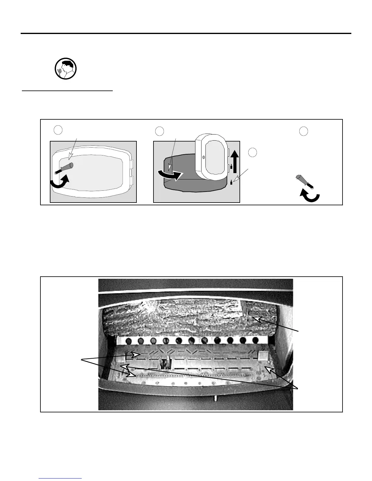 burner pan (see the illustration below). The rear log is fragile and should not be