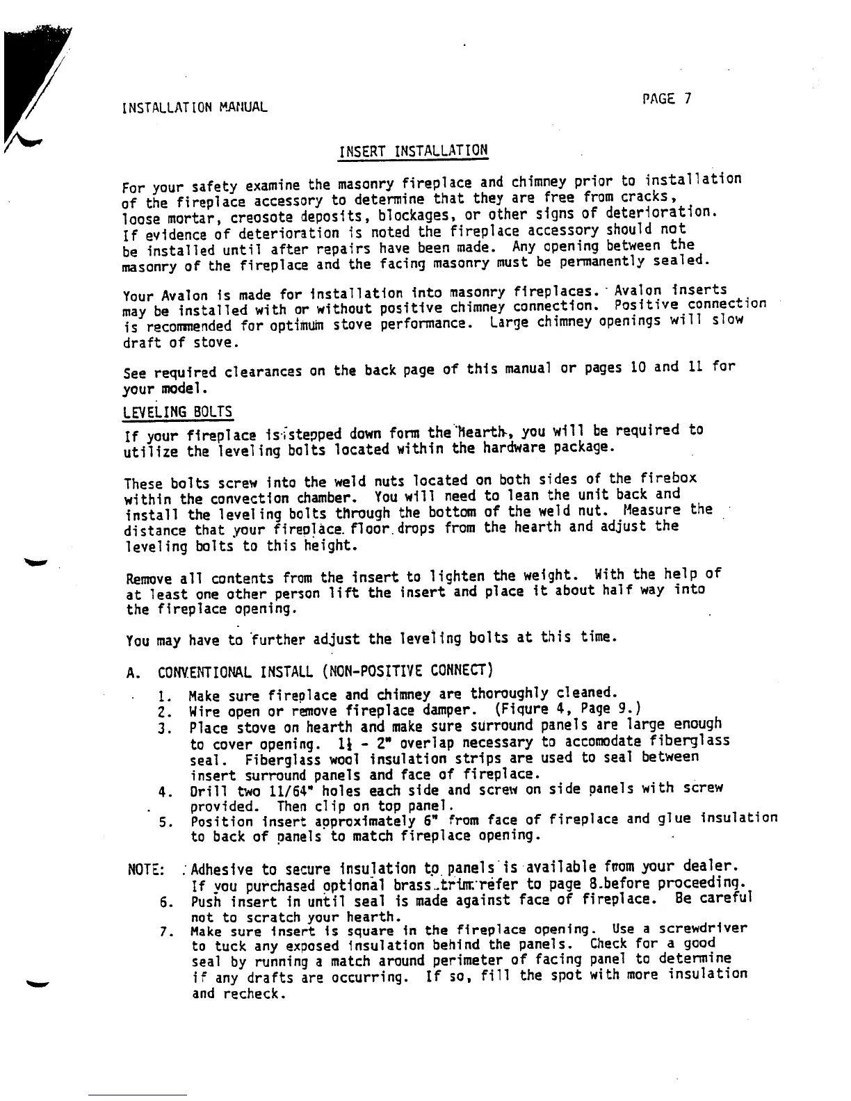 Avalon 901 - Insert Installation; Leveling Bolts; Conventional Install