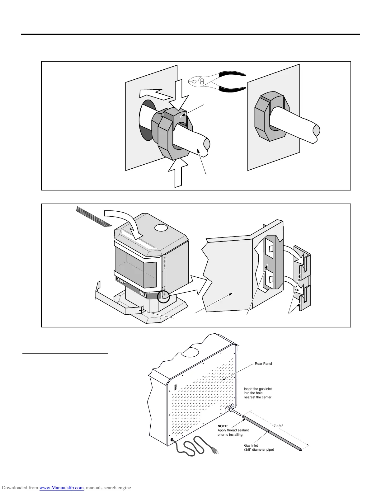 stove over the cord and push it into the hole in the rear panel (see the illustration below).