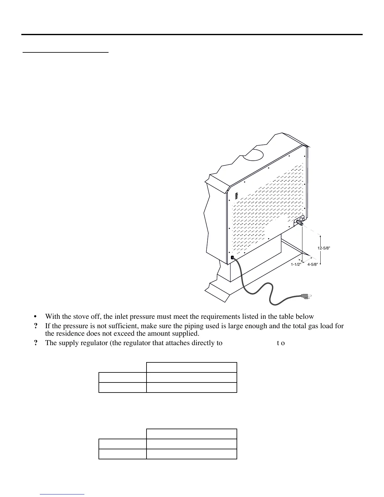 ¥ With the stove off, the inlet pressure must meet the requirements listed in the table below