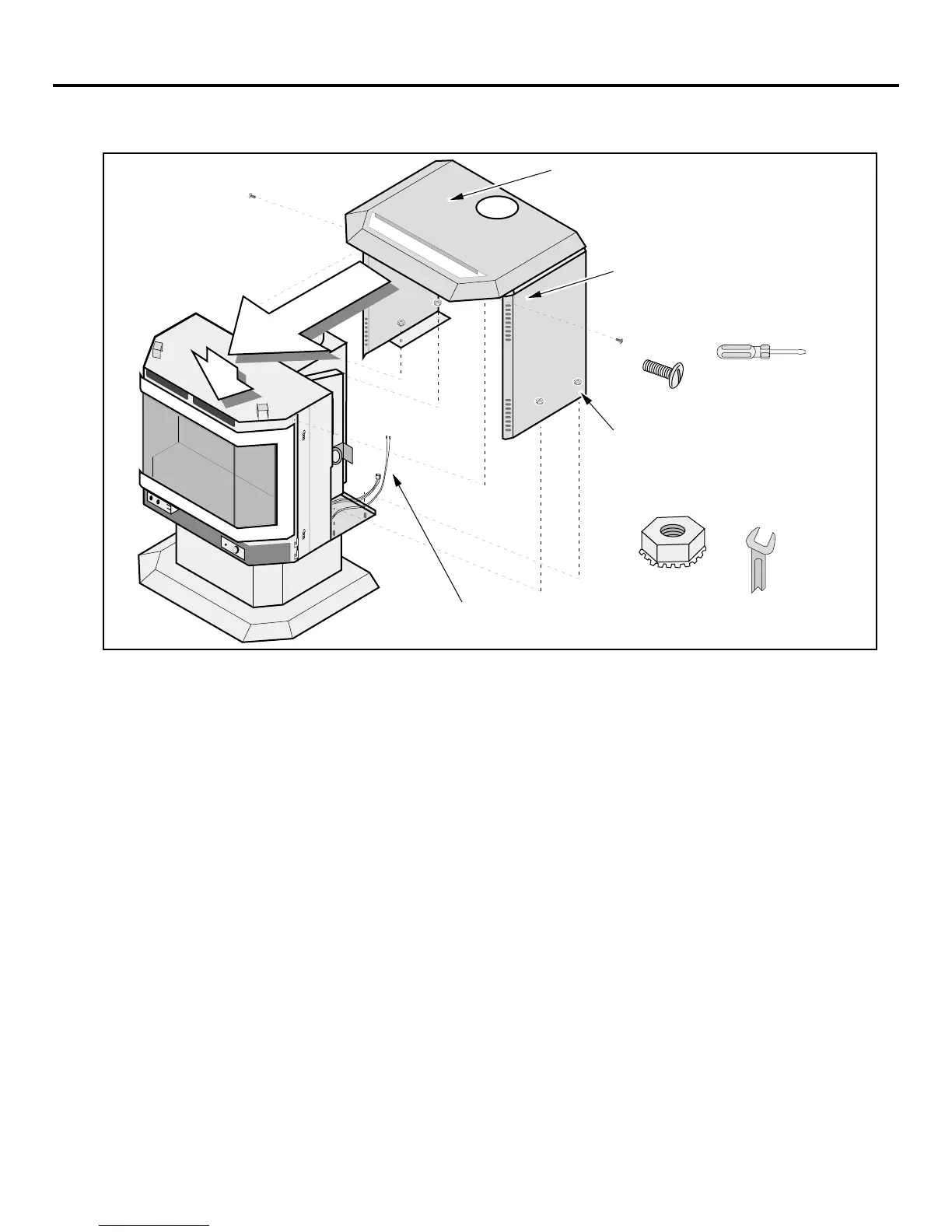 2 Slide the side and top panels onto the stove from the back. Make sure the wires do not get caught