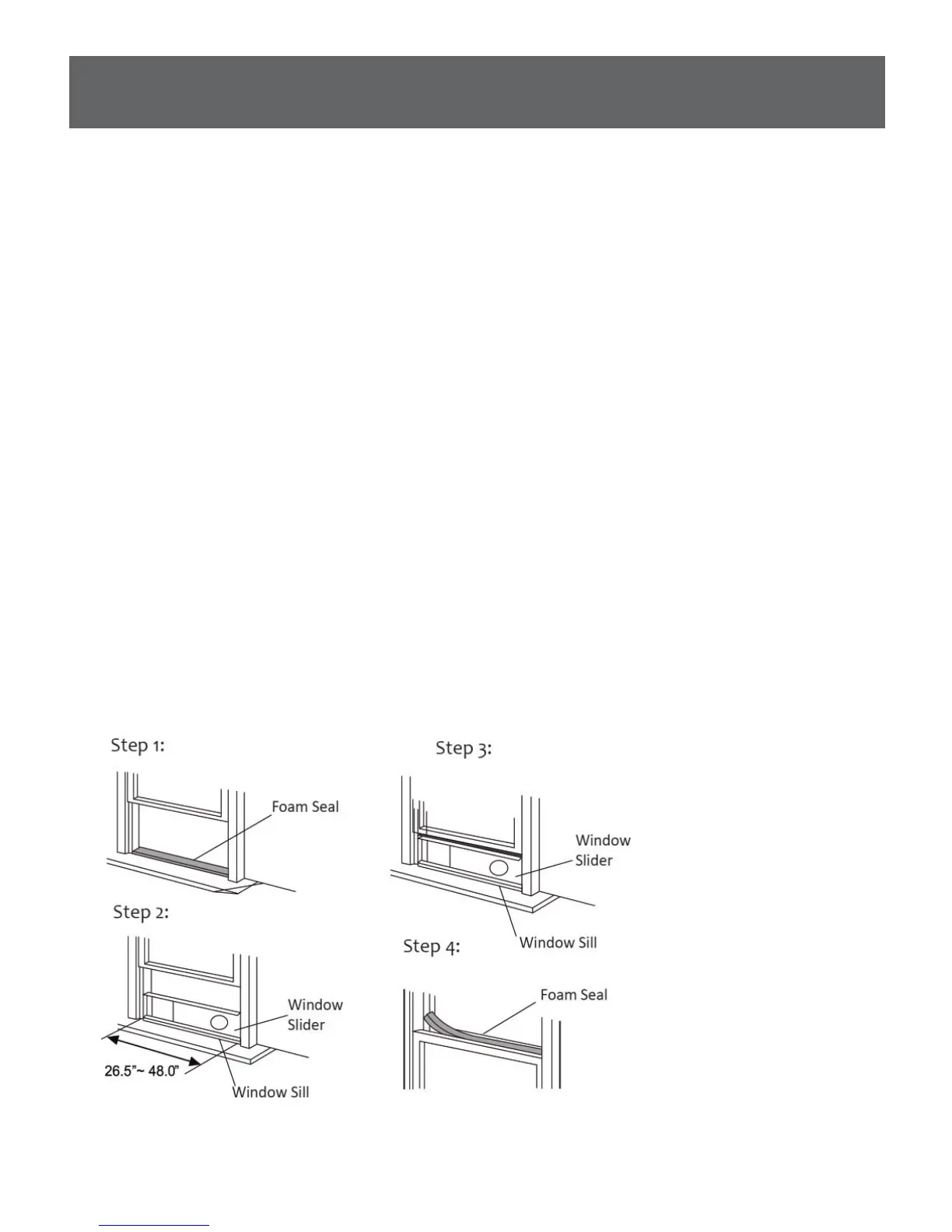 the window. Shorten the adjustable window kit if the width of the window is less than 26.5 inches. Open the win-