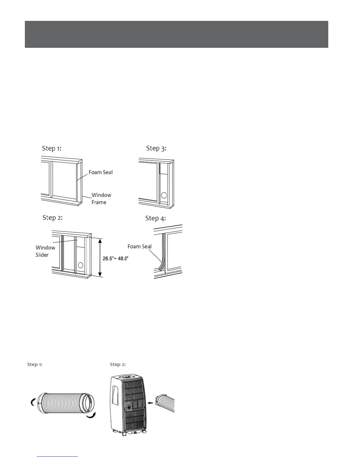 height of the window. Shorten the adjustable window kit if the height of the window is less than 26.5 inches. Open