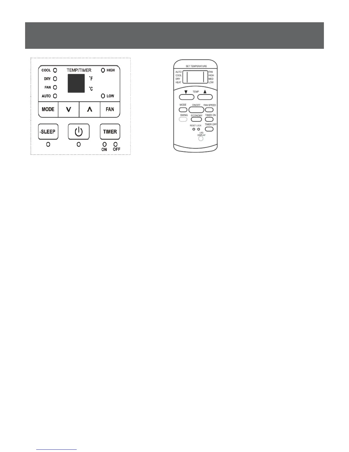 LED Display: Shows the set temperature in “º C” or “º F” and the Auto- mer se ngs. While on DRY and FAN modes
