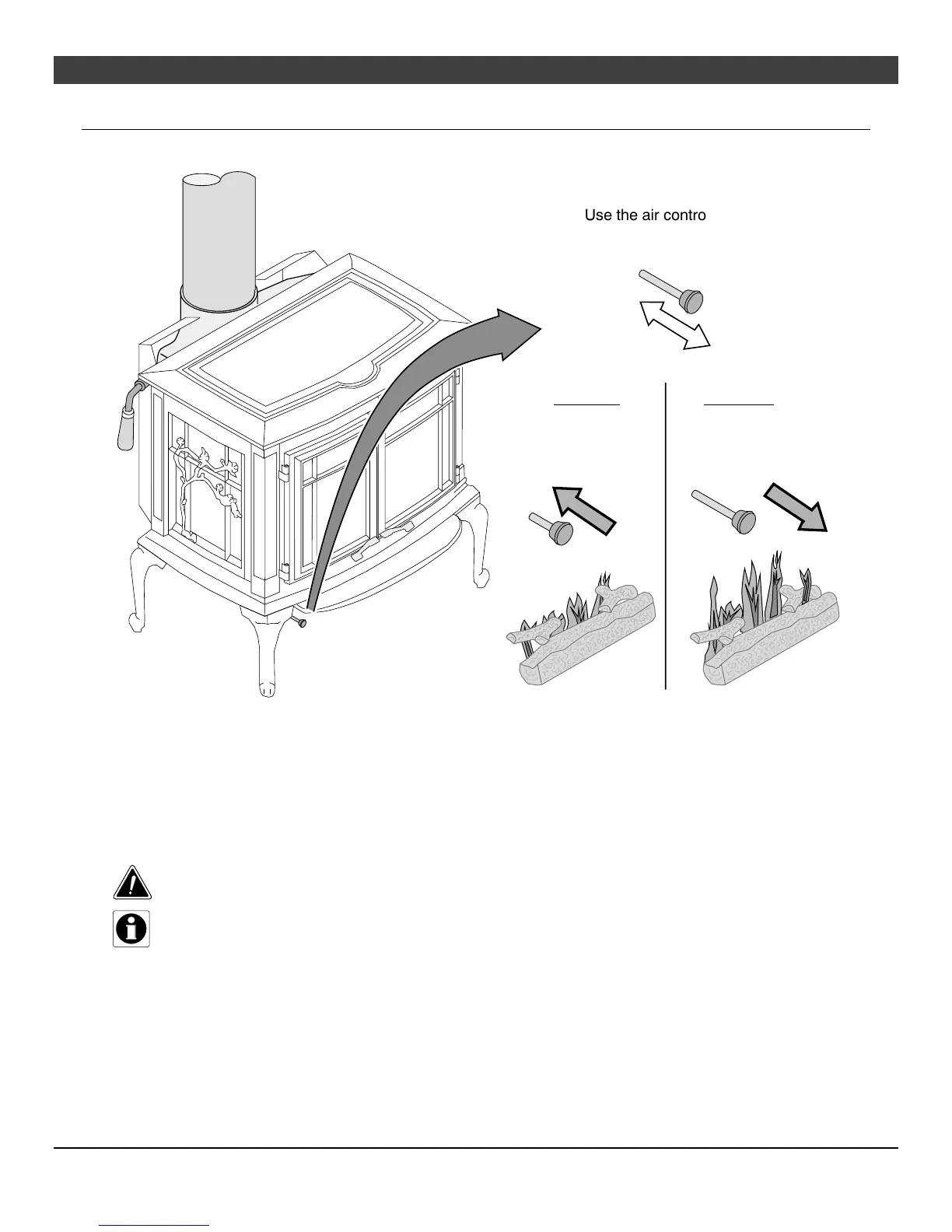 Use the air control slider to control the burn rate of the stove. See the illustration below for details.