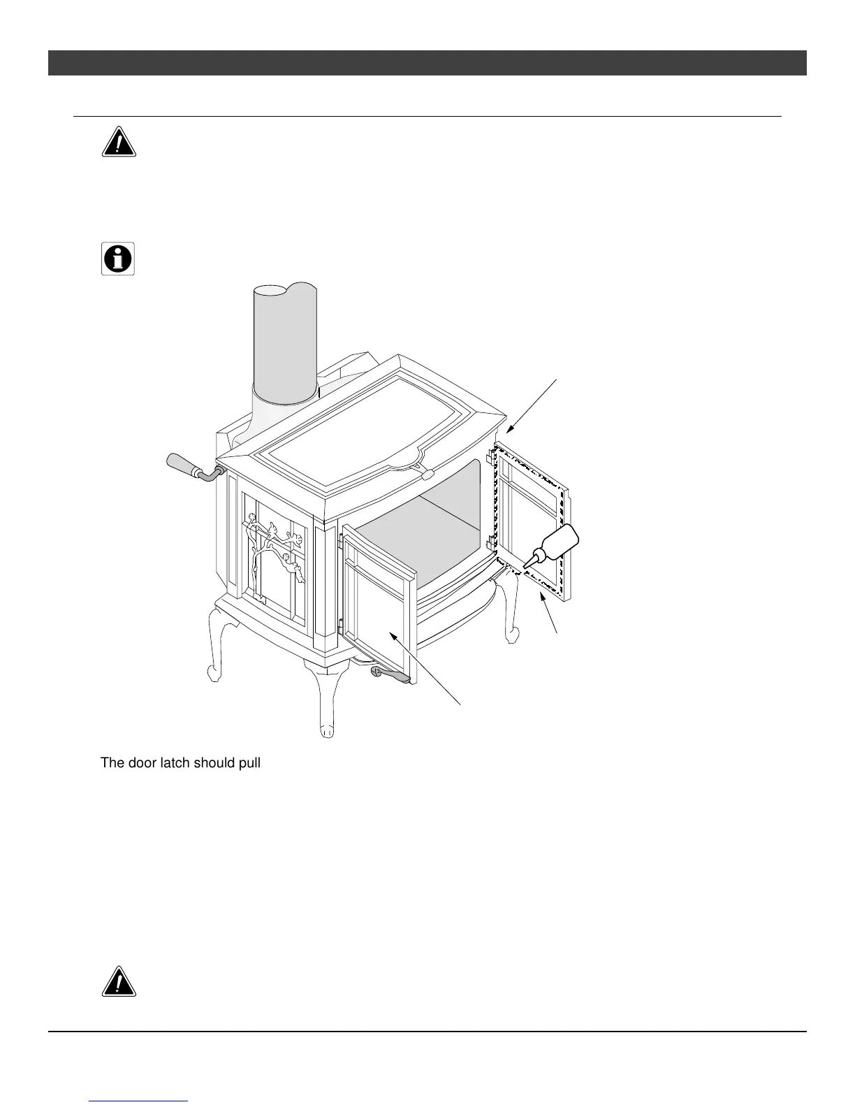 The door must form an air-tight seal to the firebox for the stove to work correctly. Inspect the door gasket