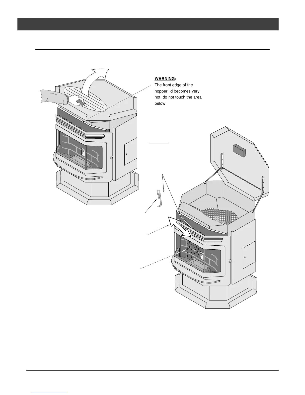 Run the stove until the pellets run out. Open the hopper and vacuum out the entire hopper. The