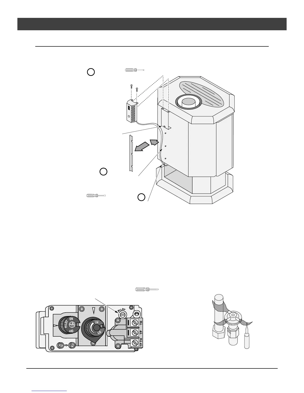 To adjust the pilot flame, turn this screw (NOTE: if totally