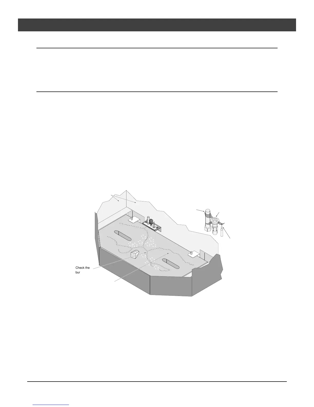 • Check the firebox and area around the pilot to make sure there is no warping or damage.