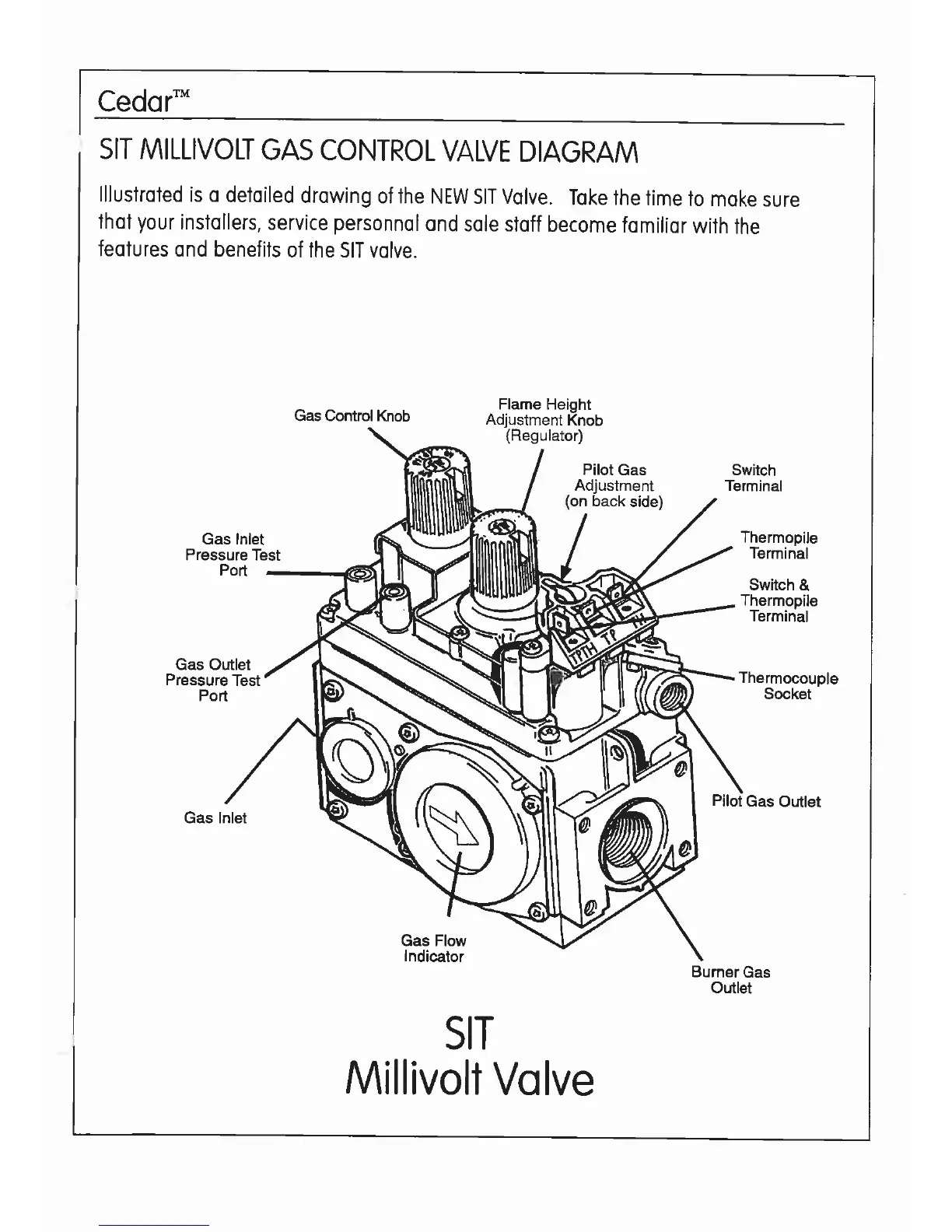 Avalon Cedar - SIT Millivolt Gas Control Valve Diagram