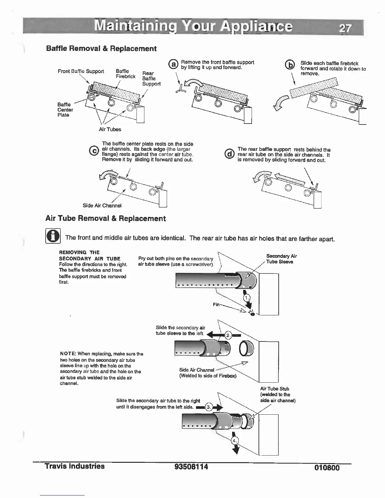 Avalon Mission - Maintaining Your Appliance; Baffle Removal & Replacement; Air Tube Removal & Replacement