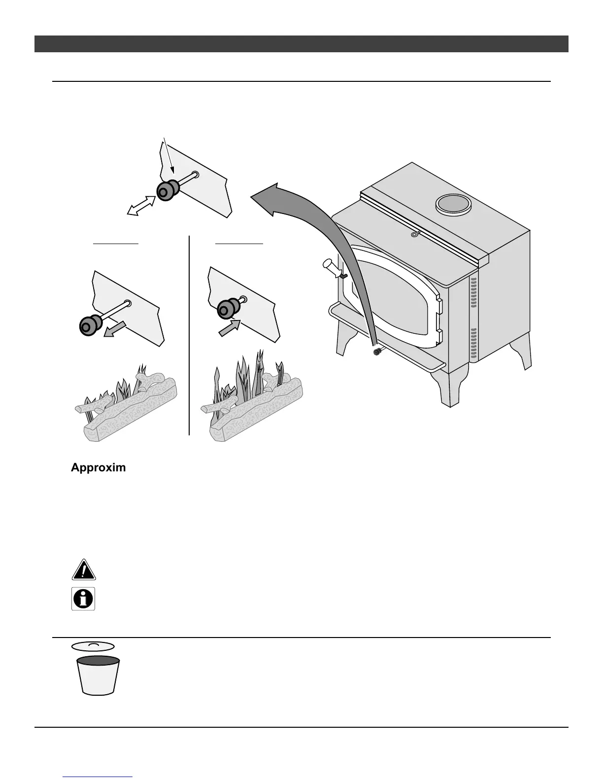 Use the air control slider to control the burn rate of the stove. See the illustration below for details.