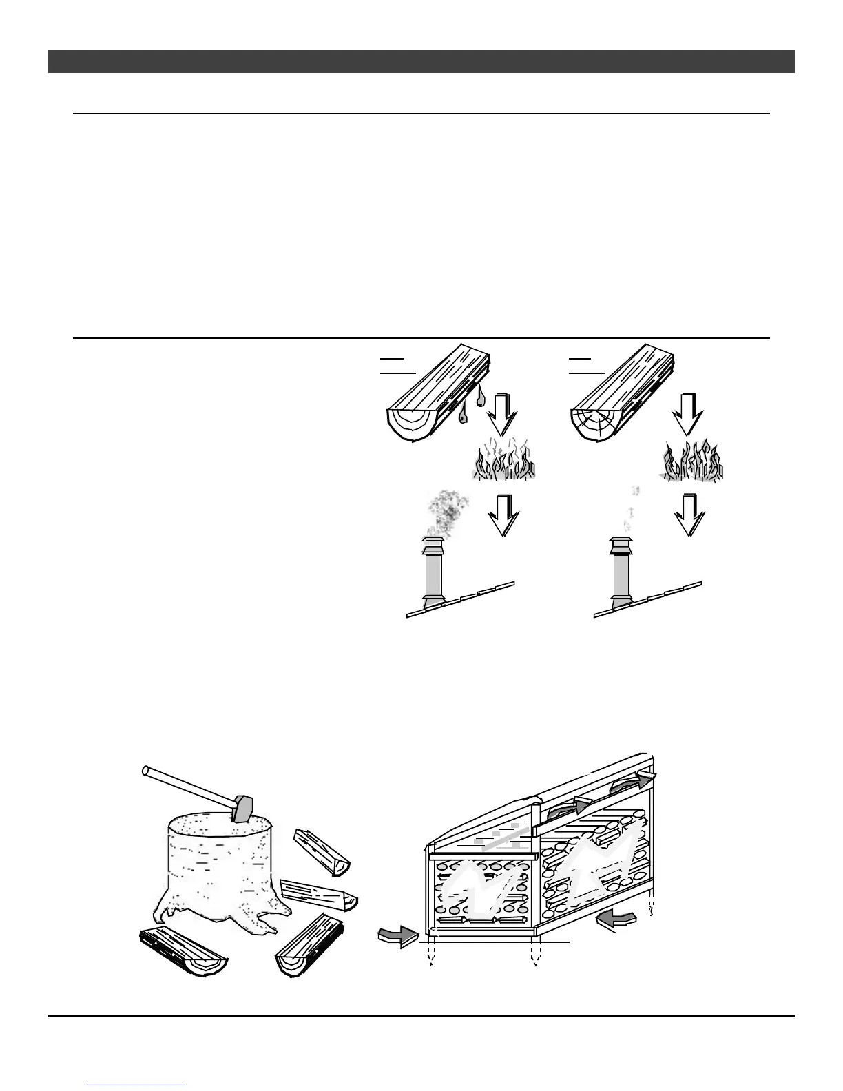 • Use smaller pieces of wood during start-up and high burns to increase temperature
