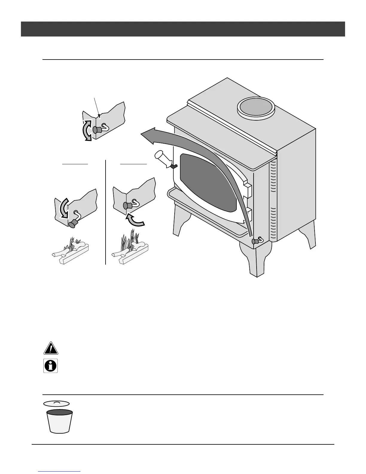 Use the air control slider to control the burn rate of the stove. See the illustration below for details.