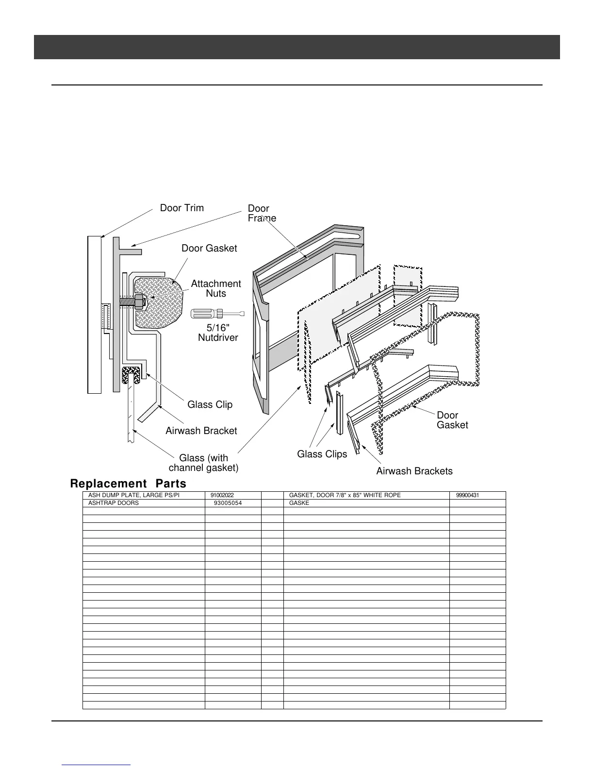 ASH DUMP PLATE, LARGE PS/PI 91002022 GASKET, DOOR 7/8" x 85" WHITE ROPE 99900431