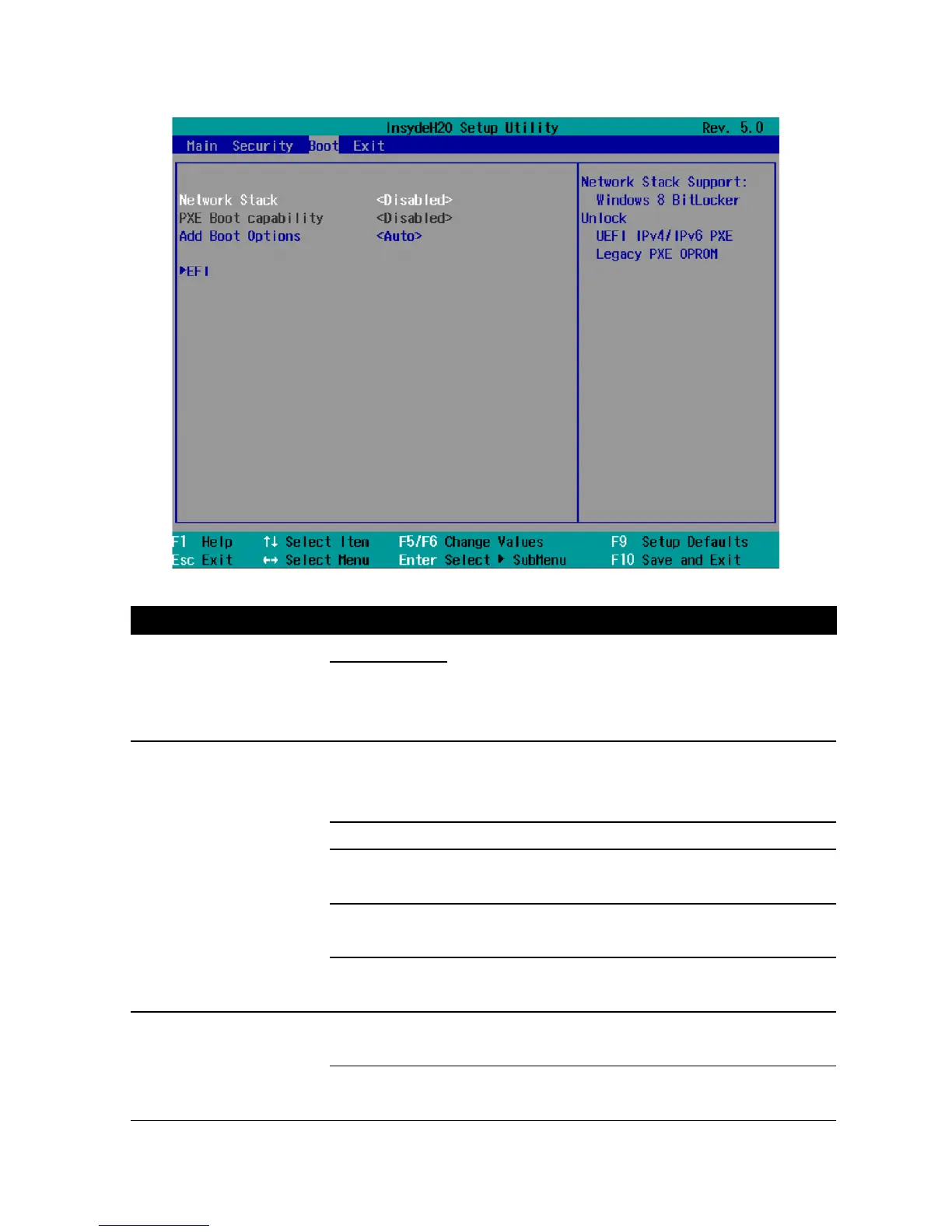 Network Stack Enabled Specifies whether the UEFI Network Stack is available
