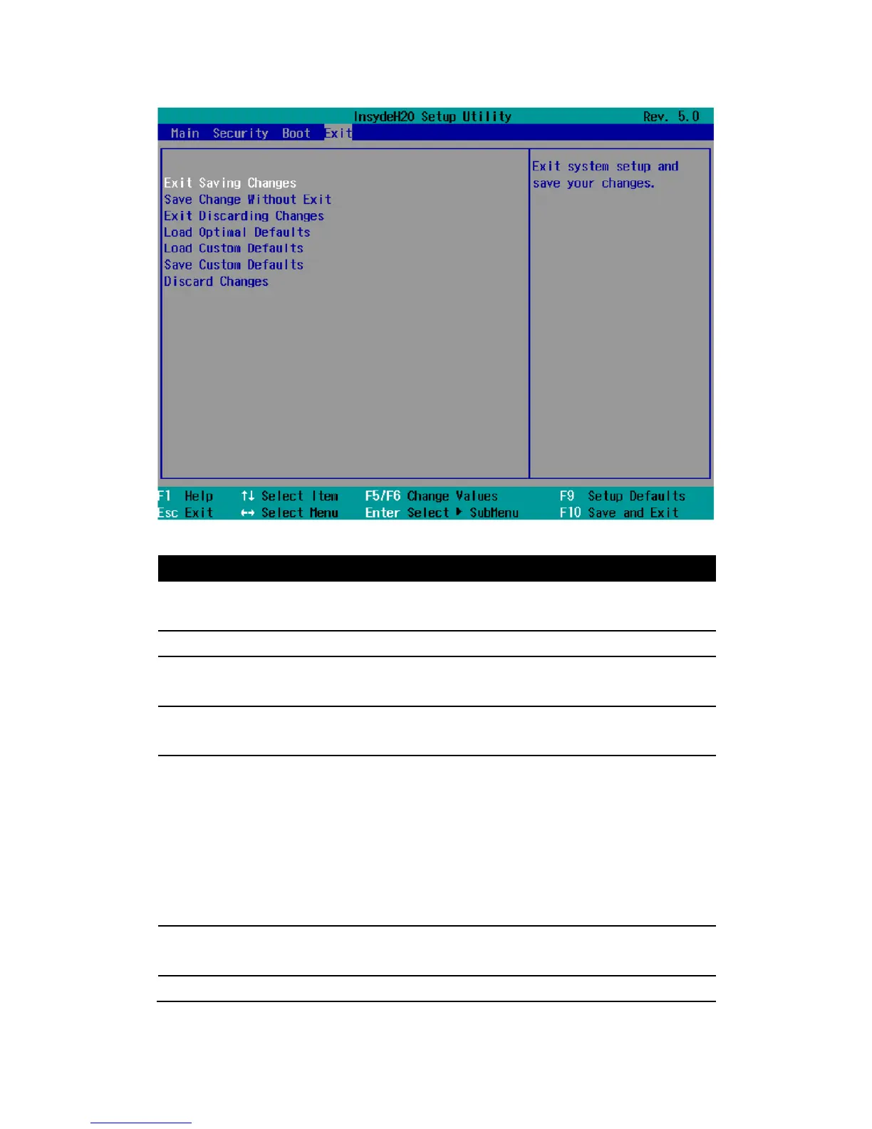 Exit Saving Changes All changes are saved and the system is restarted with the new