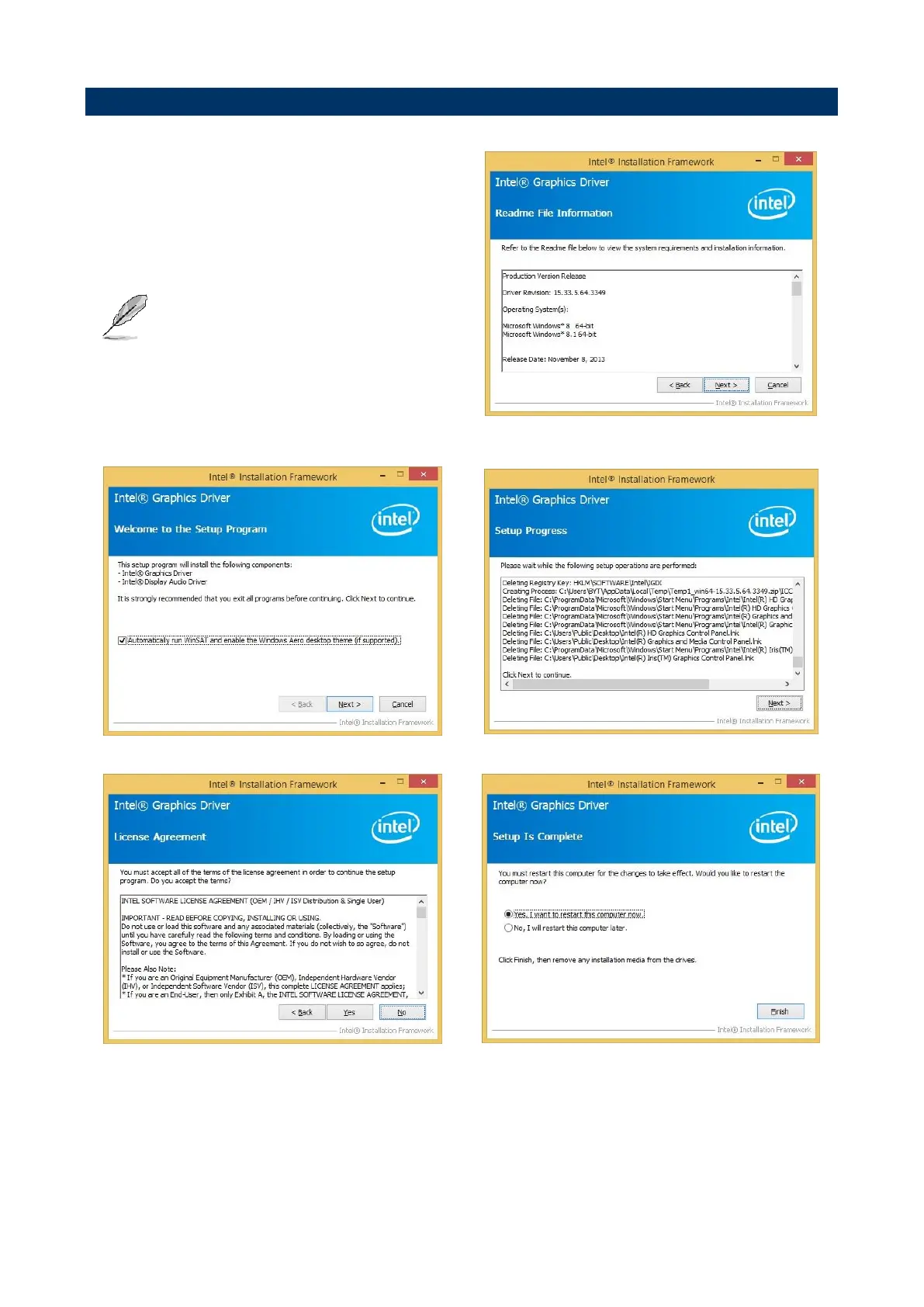 Note: The installation procedures and