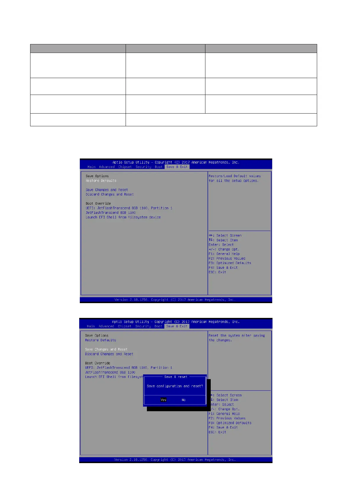Avalue Technology EMX-H110DC - Save and Exit Options