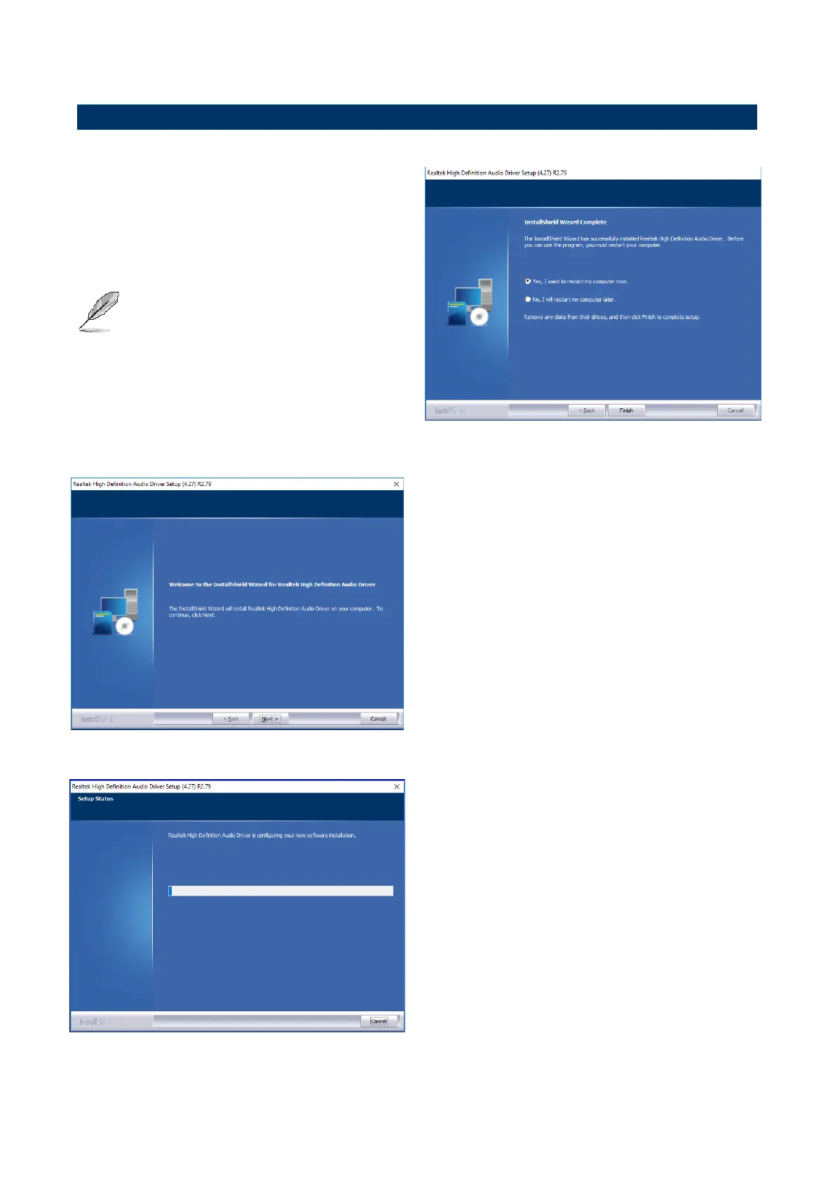 Note: The installation procedures and