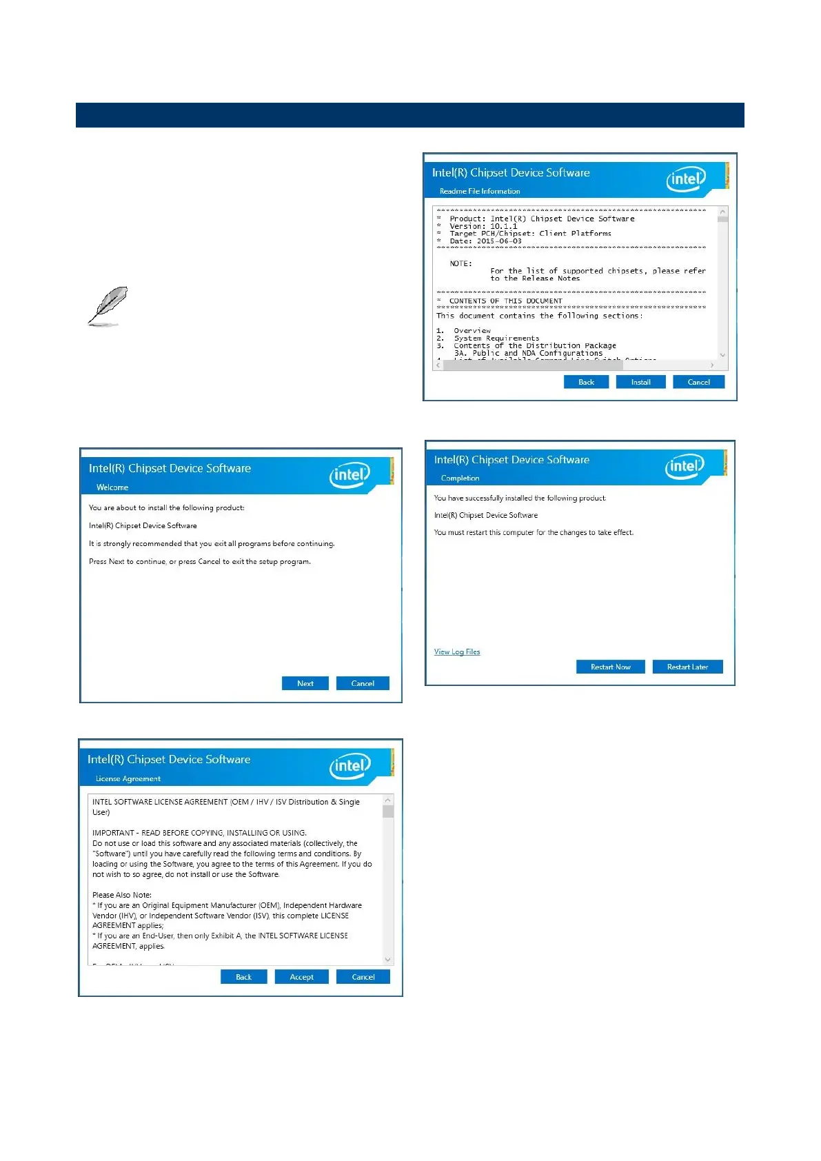 Note: The installation procedures and