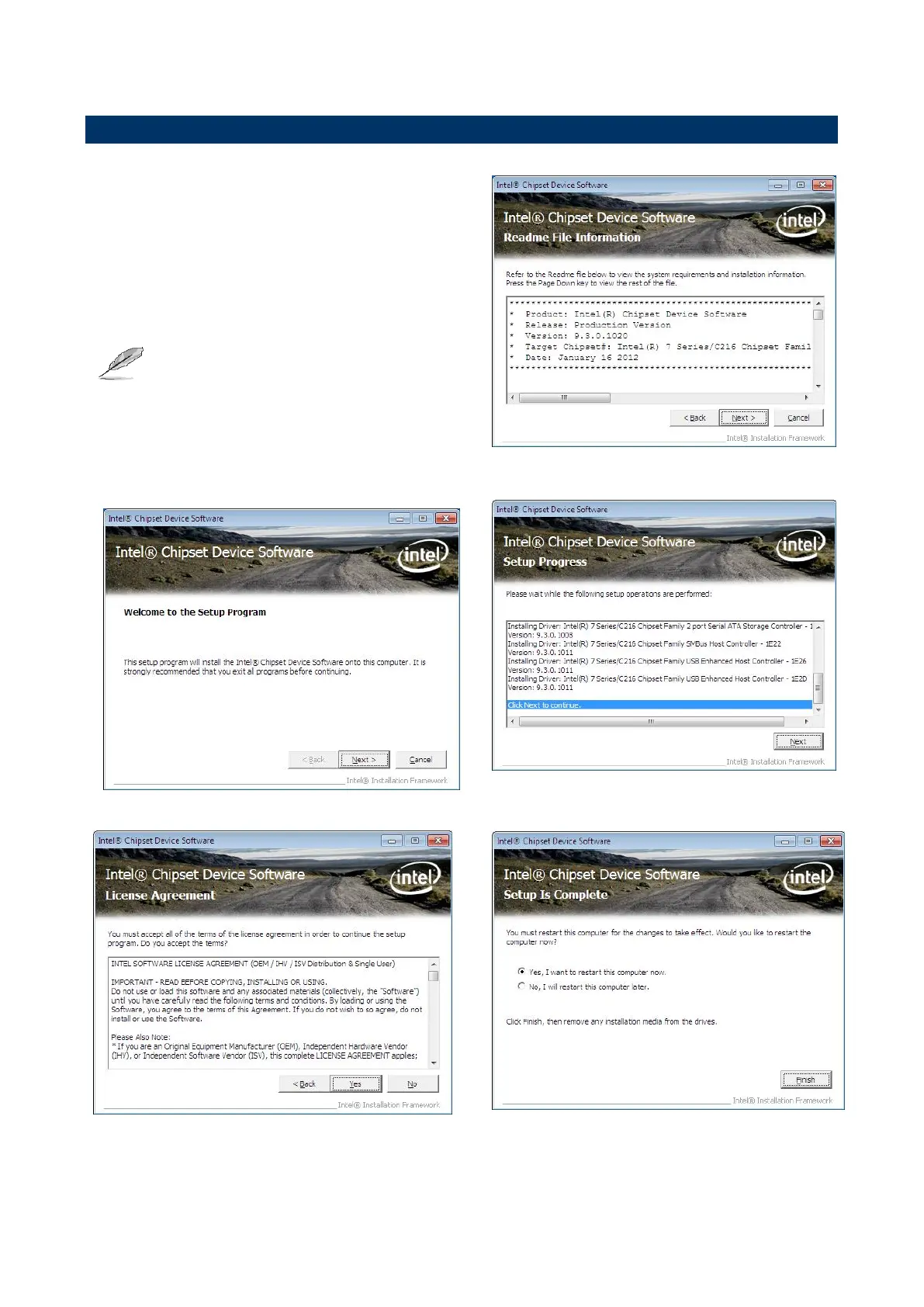 Note: The installation procedures and screen