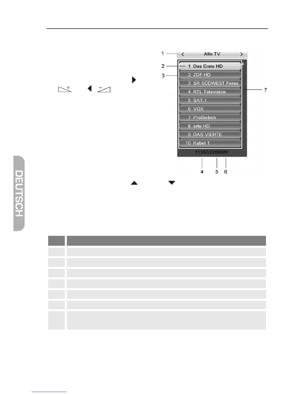 Scrollbalken – zeigt die Position des aktuellen Programms in der Programmlis-