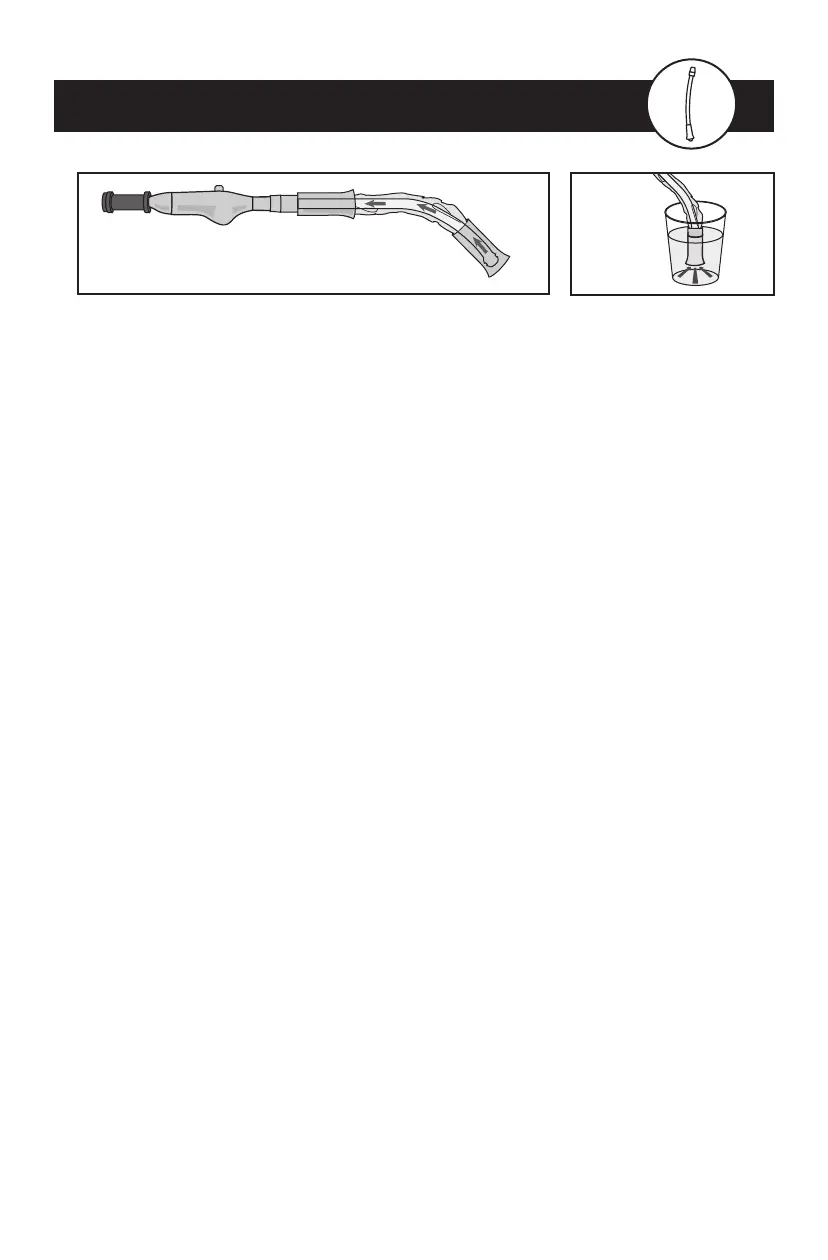 • Pour le rangement, xer la poignée en haut de la tubulure d’aspiration en position verticale. Remarque : jeter la tubulure, l’adaptateur en Y, la poignée