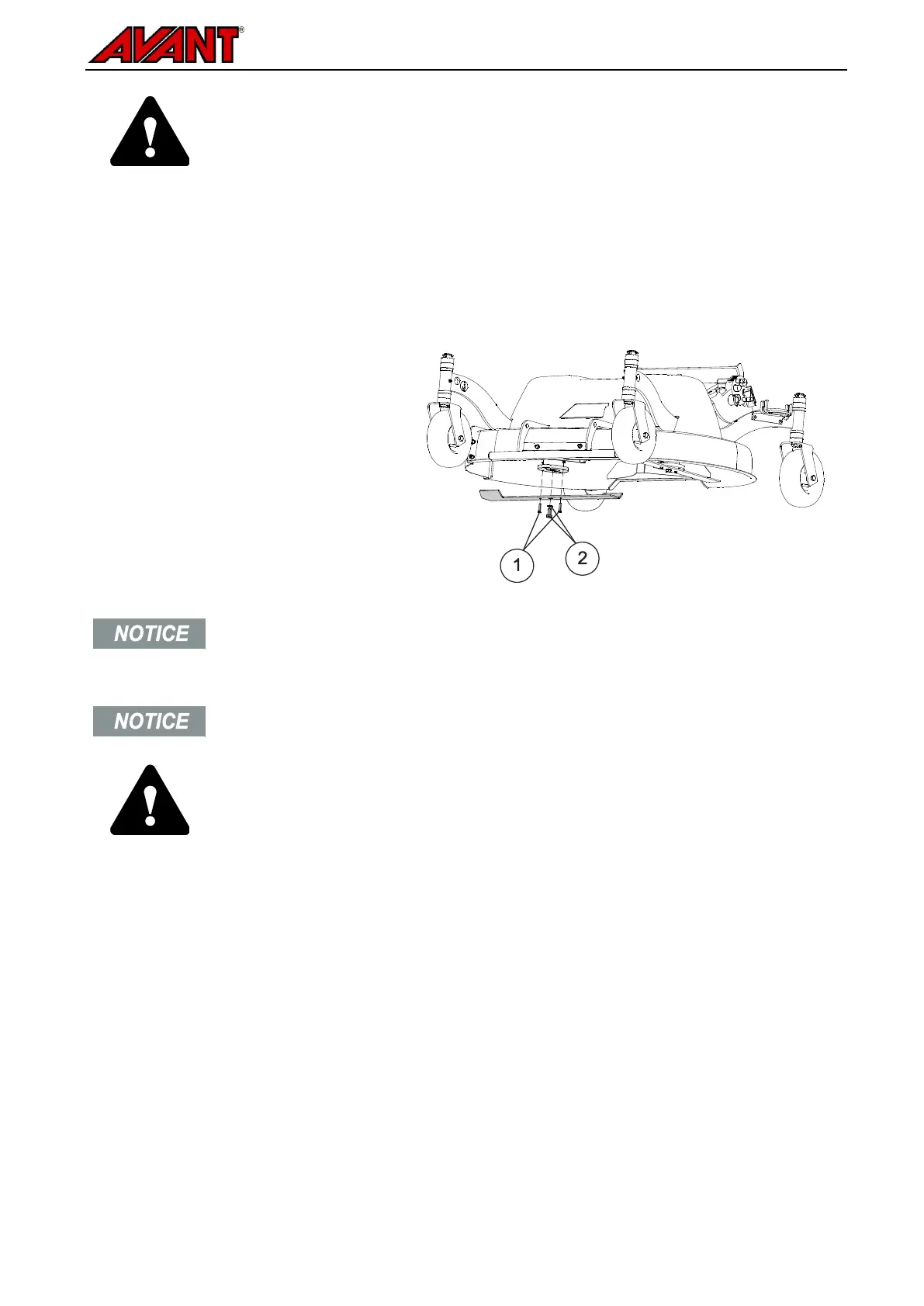 The shear bolts and the timing of the blades must be checked after the blades collide heavily with an obstacle.