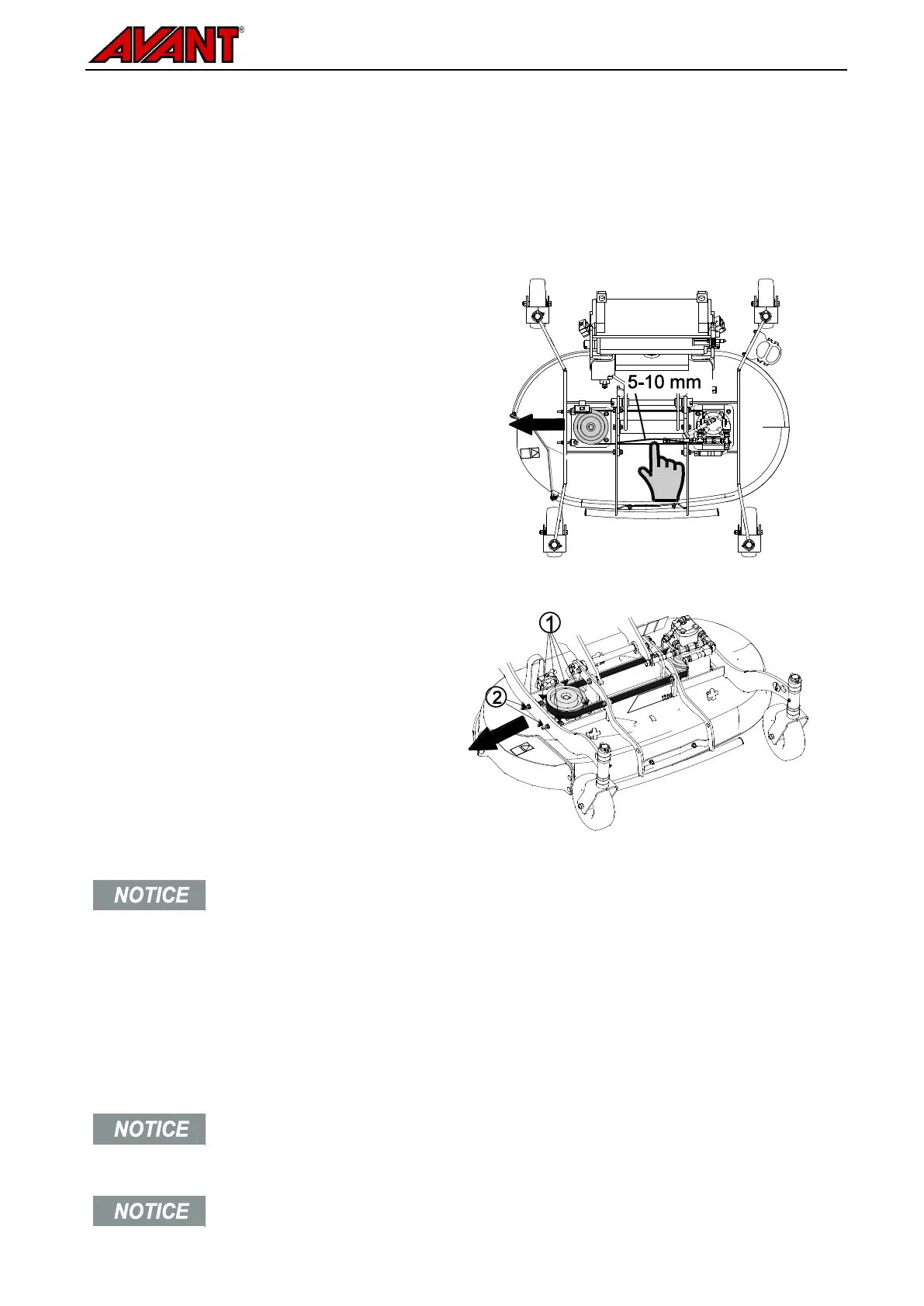checked and adjusted, if the blades hit a large rock or other obstacle.