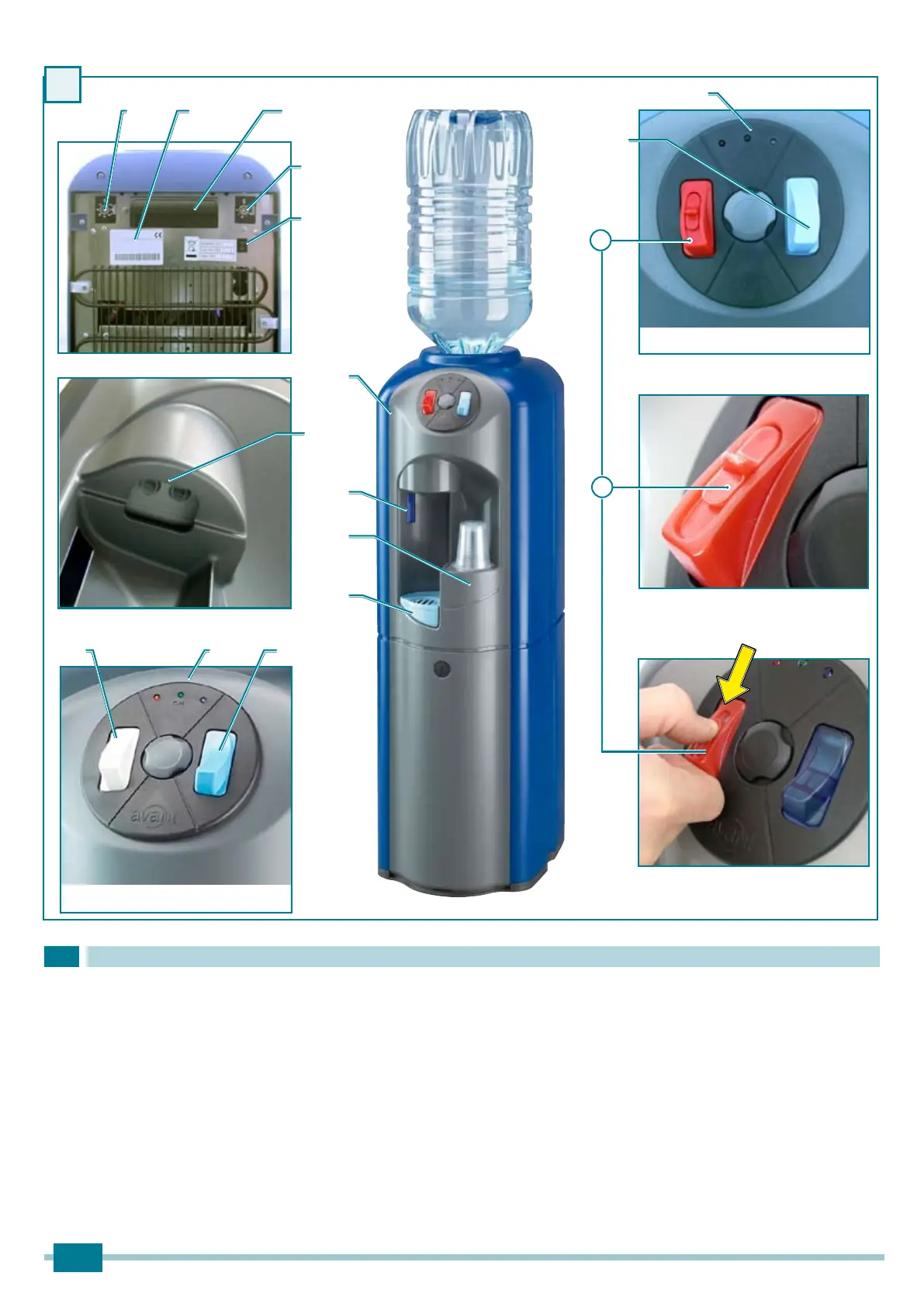 7 Pulsante erogazione acqua calda:èmunitodiunbloccodisicurezza