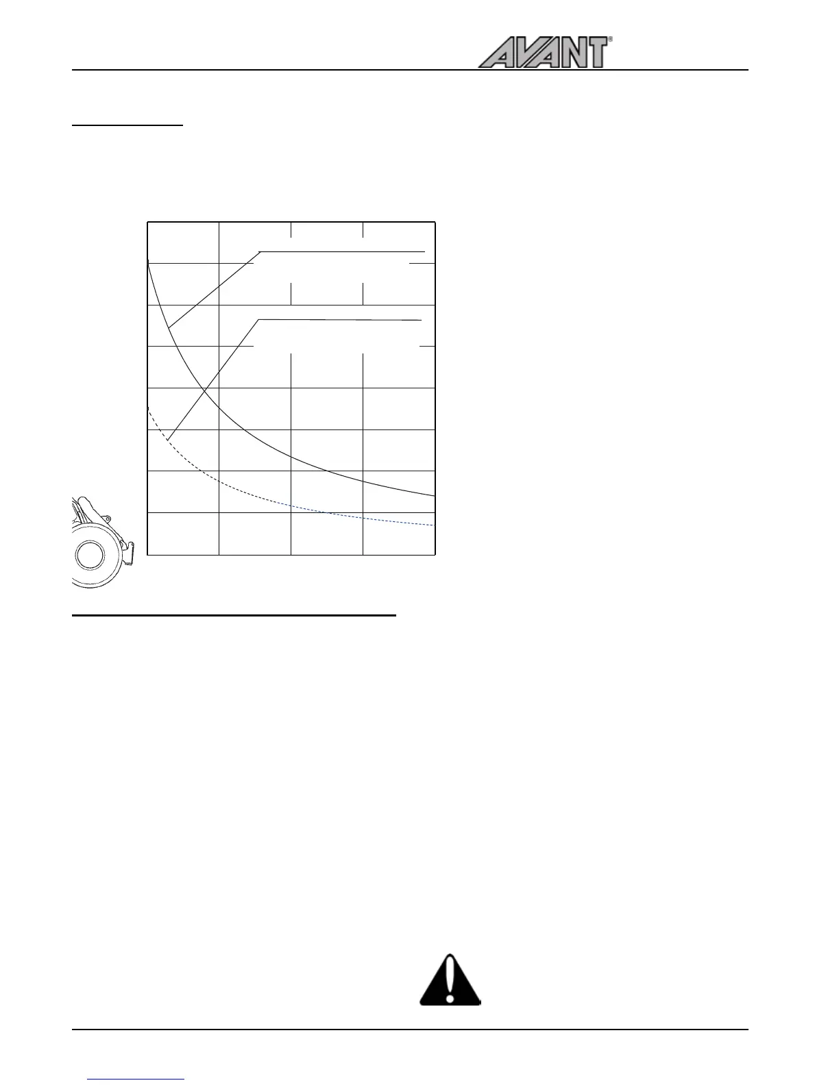The lifting capacity of the loader is limited by the possibility of tipping around the front axle. The diagram below shows