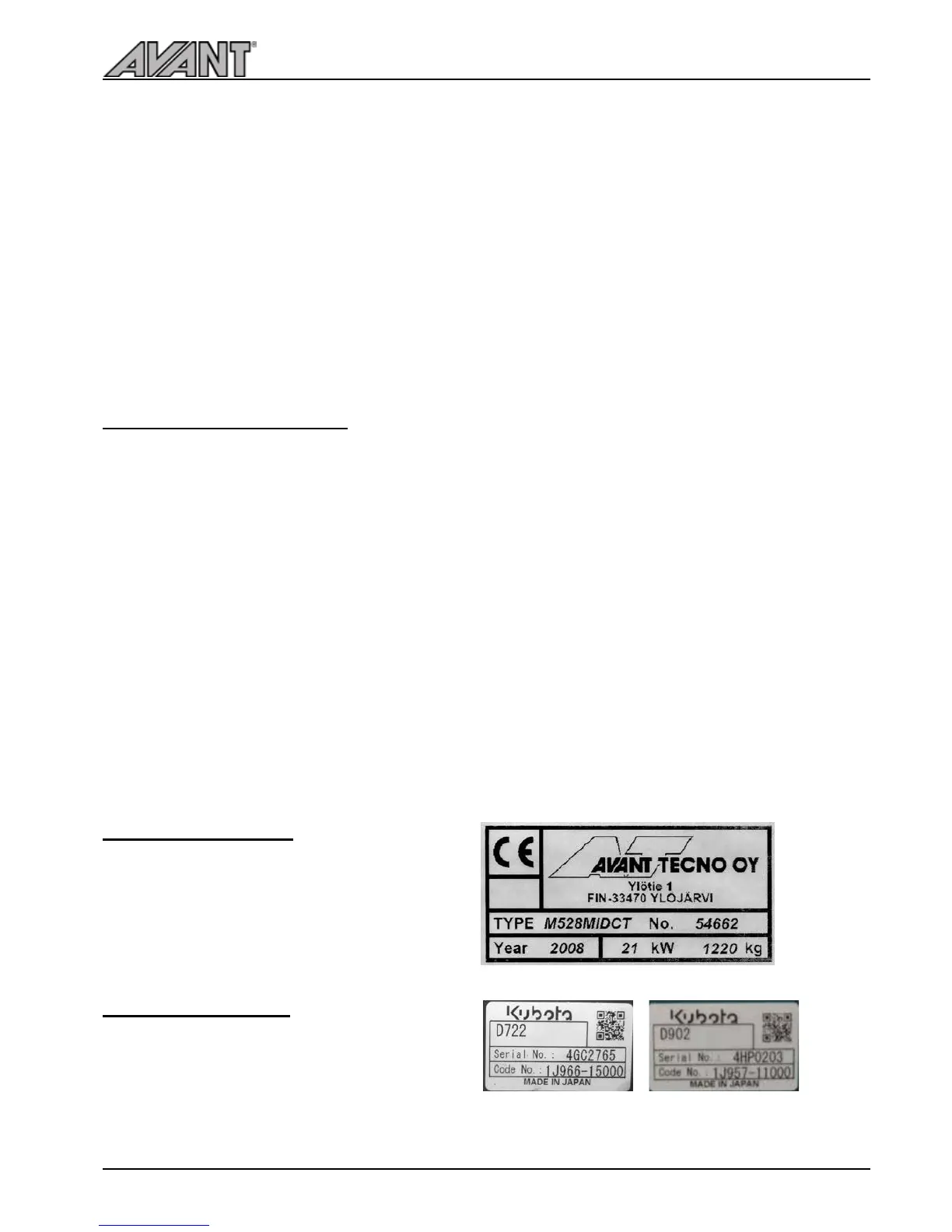 Write down the identification information of your loader in the following fields, it facilitates ordering of spare parts etc.