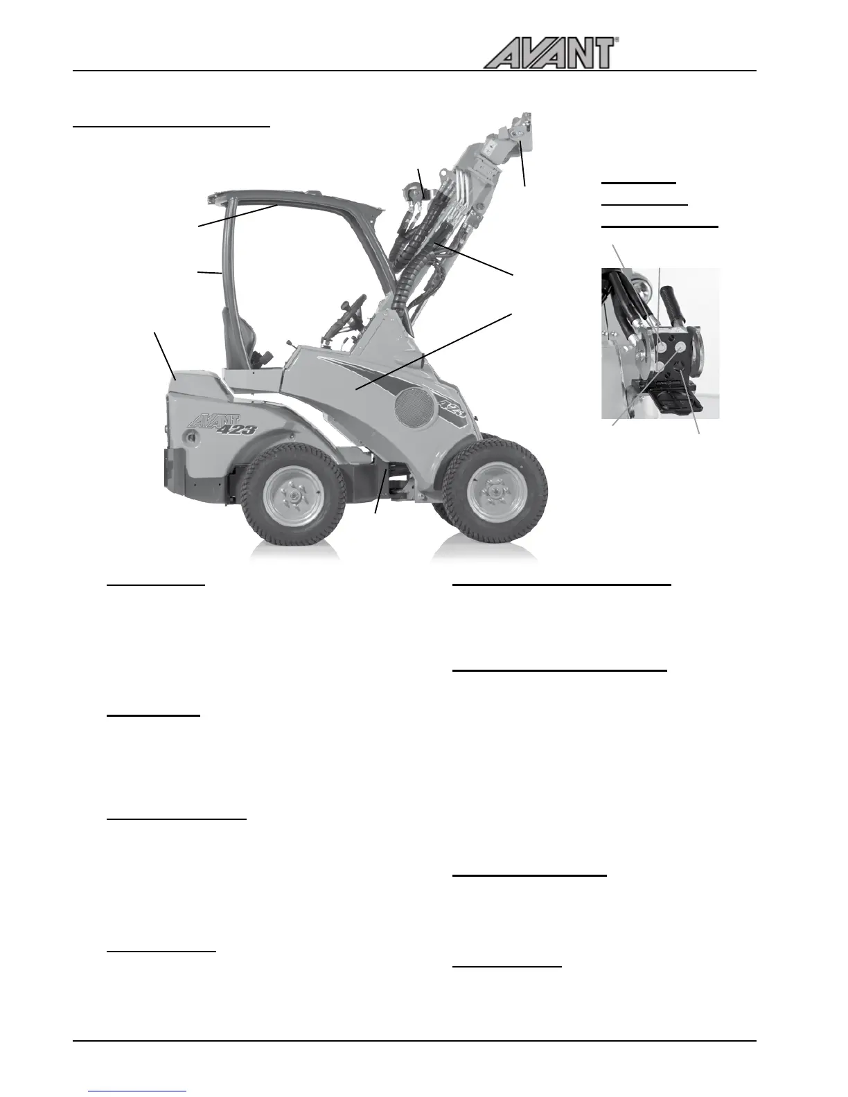 accessories, battery, fuel tank, hydraulic pumps, rear