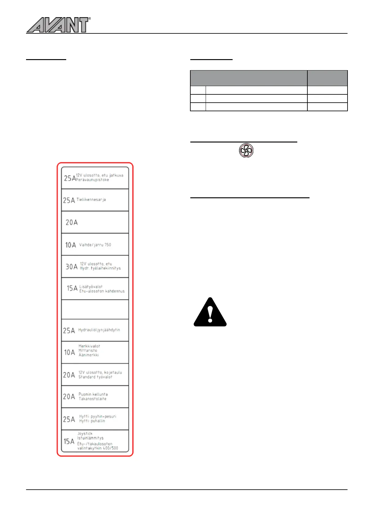 the 25A fuse of the oil cooler fan. Contact Avant service if