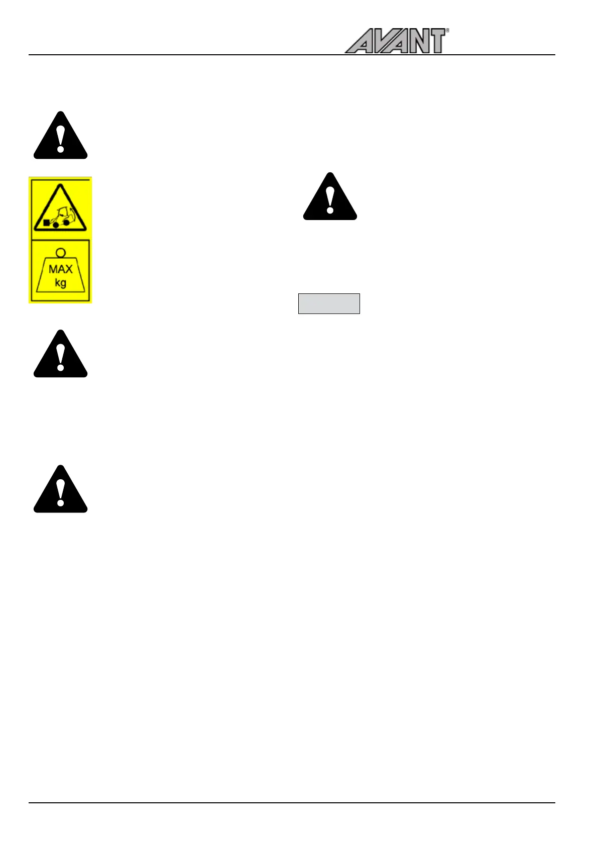 Avoid tipping over of the loader with careful operation and