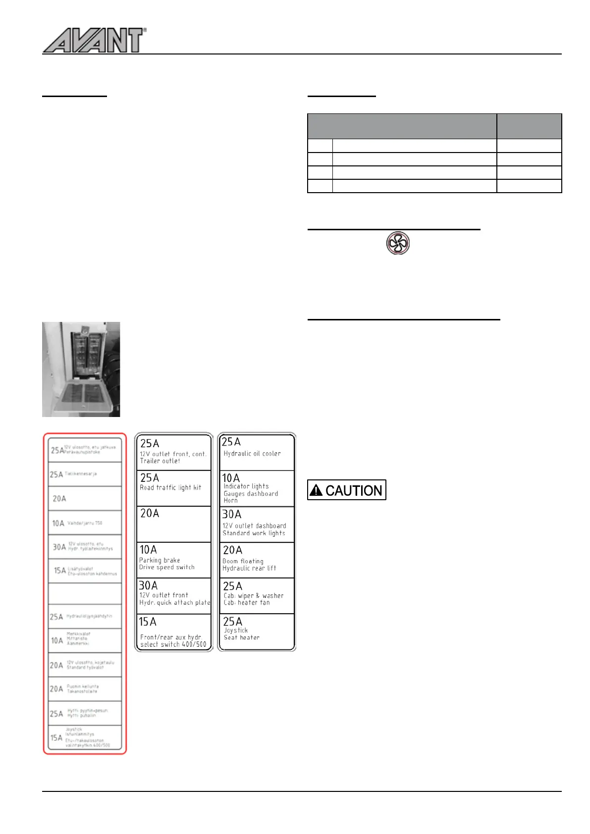 the 25A fuse of the oil cooler fan. Contact Avant service if