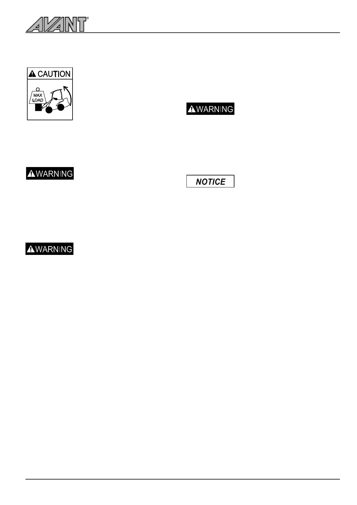 Avoid tipping over of the loader with careful operation and