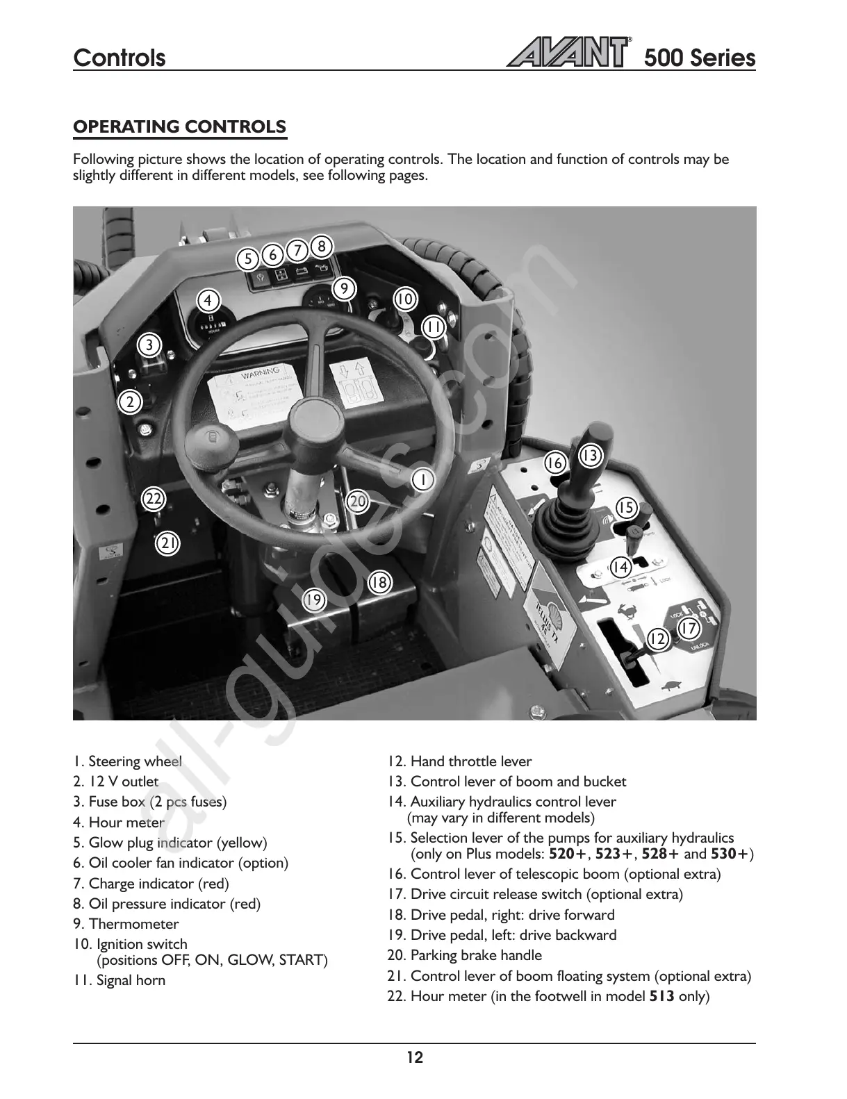 AVANT 528+ - Control Panel Overview; OPERATING CONTROLS