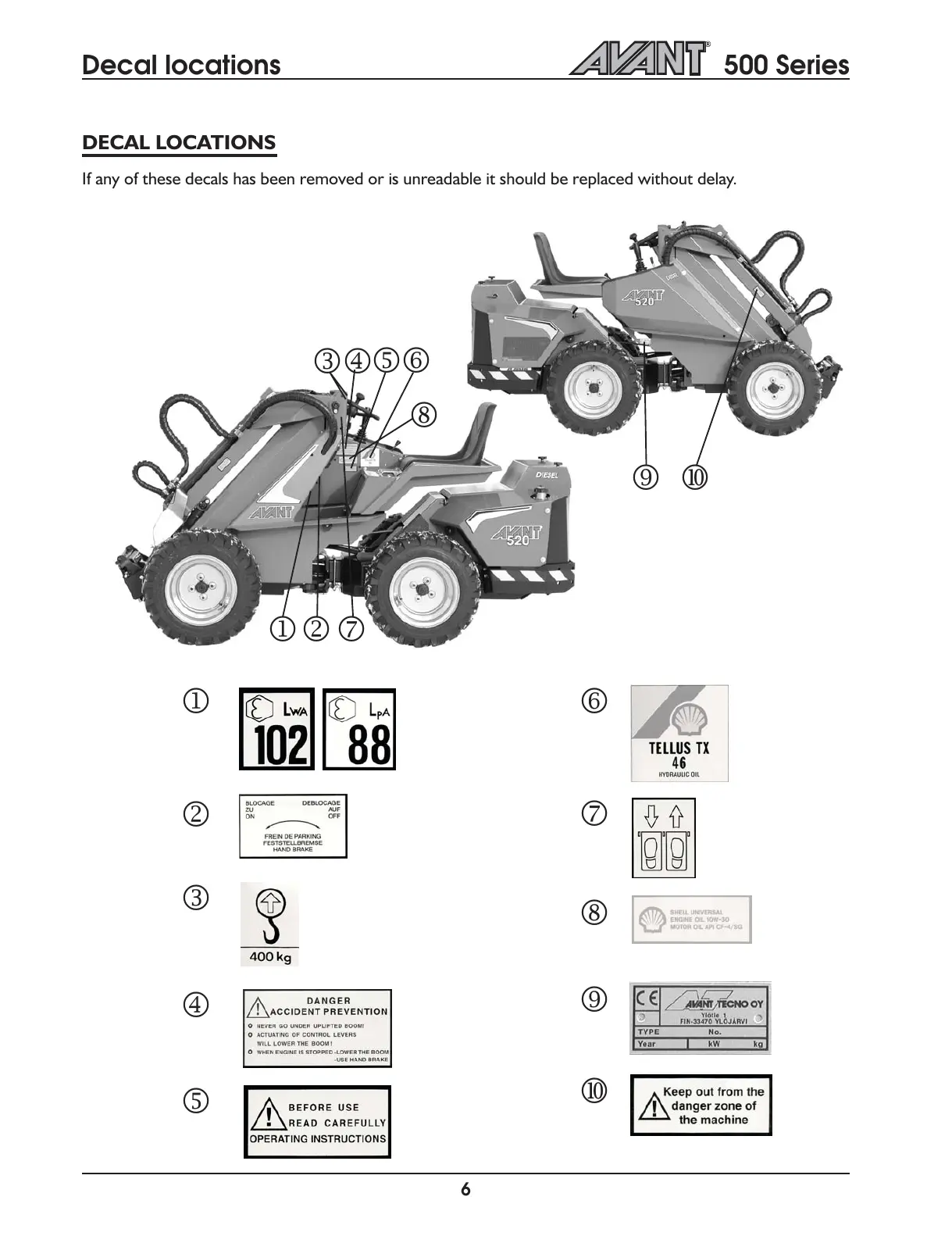 AVANT 530+ - Decal Locations