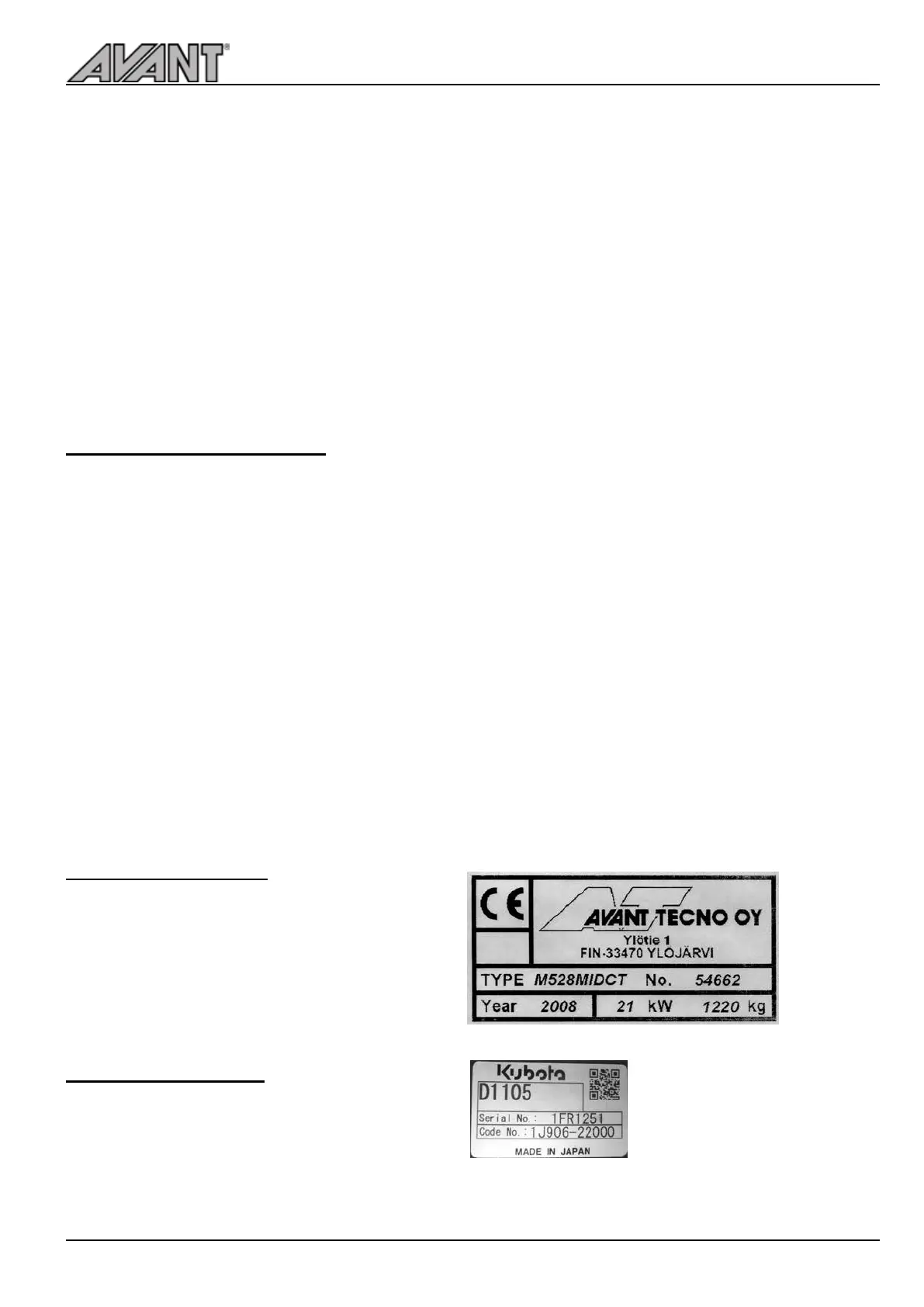 Write down the identication information of your loader in the following elds, it facilitates ordering of spare parts etc.